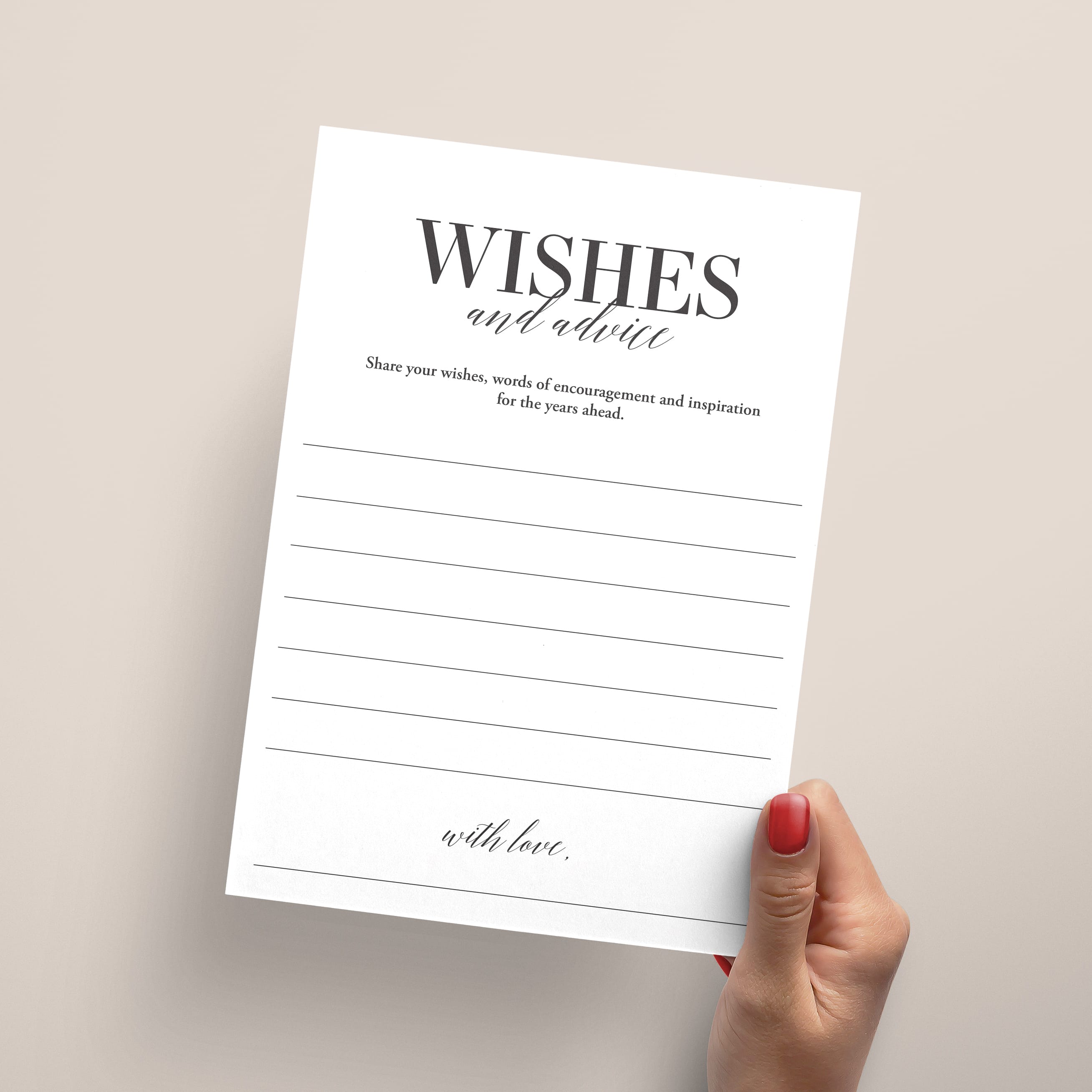 Create an amazing keepsake for the anniversary couple with these Wishes and Advice cards. Let every guest write down their wishes, words or encouragement and inspiration for the years ahead. It's the perfect addition to any anniversary party, no matter how many years you are celebrating.