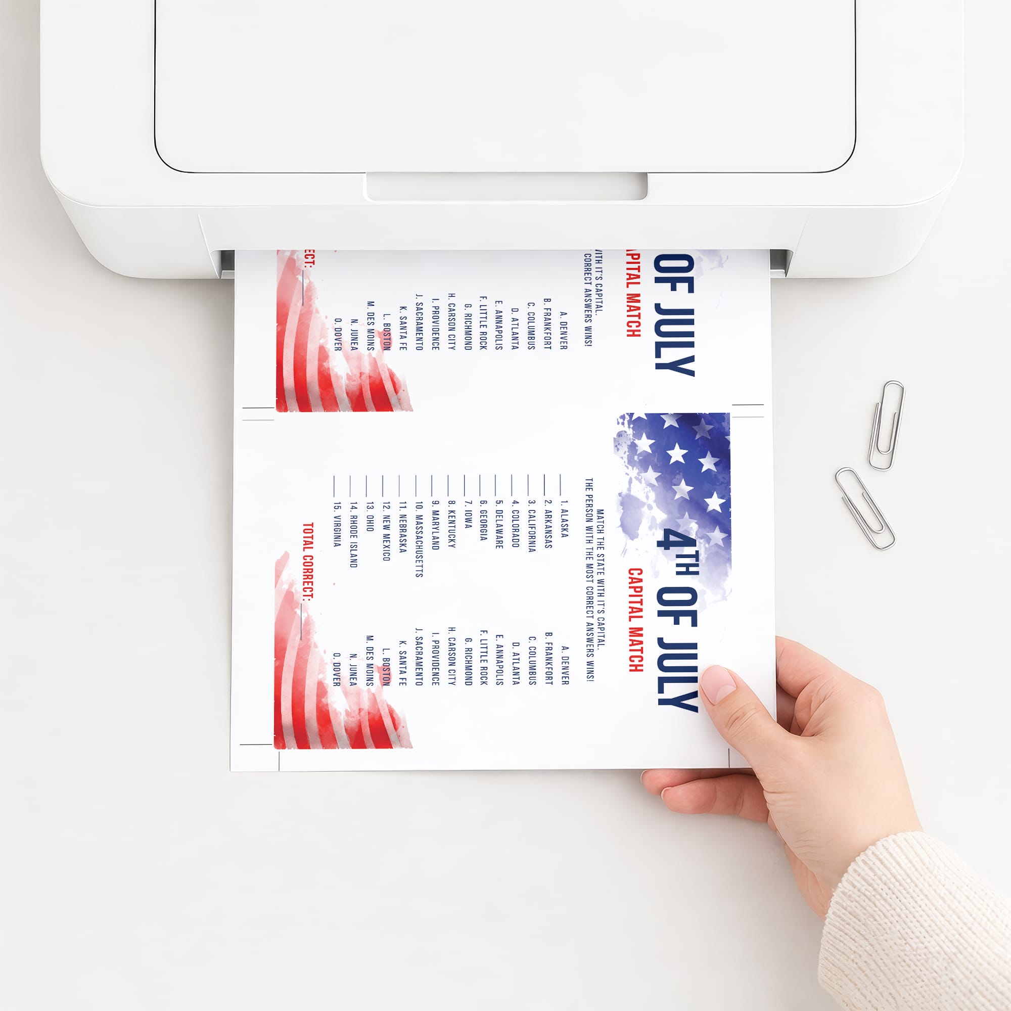 • Fourth of July Capital Match (answer key included)