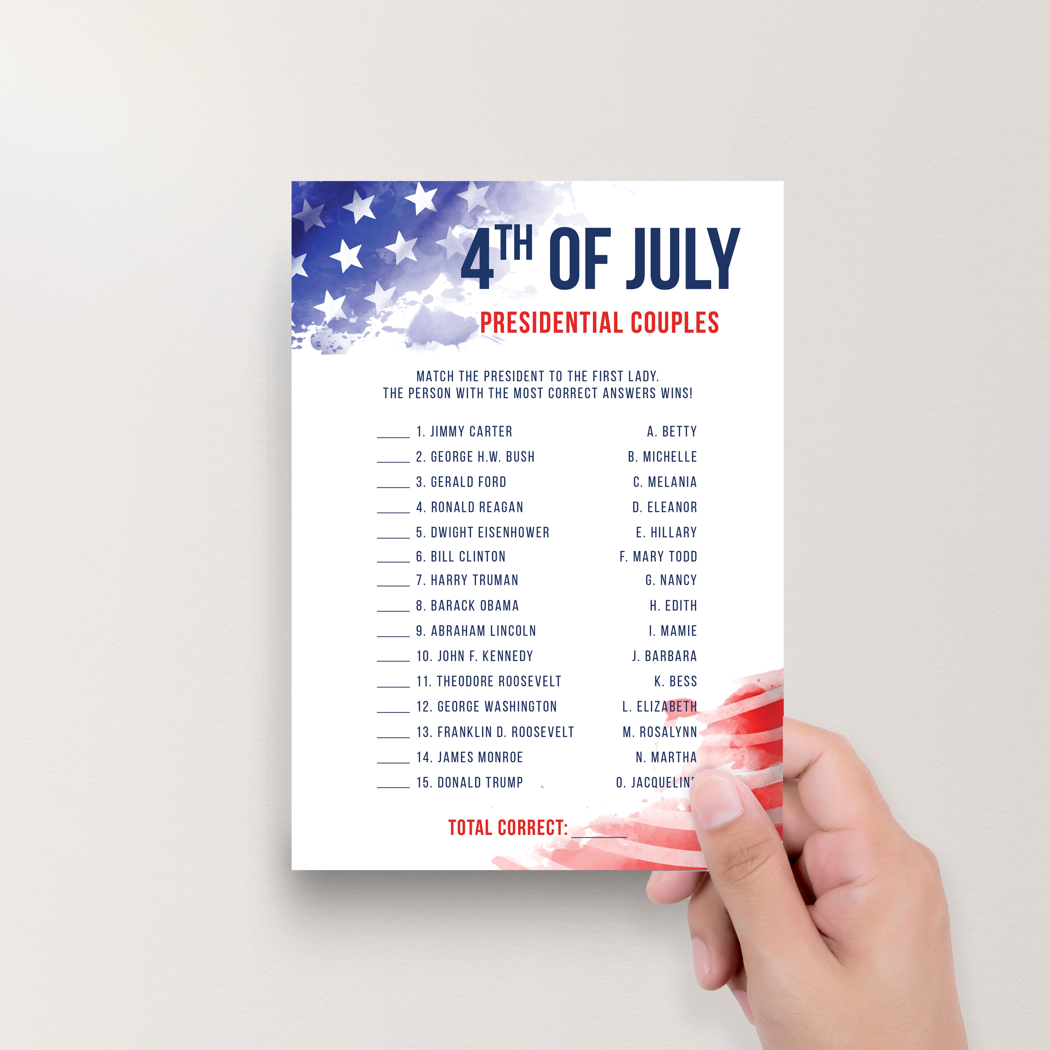 • Fourth of July Presidential Couples (answer key included)