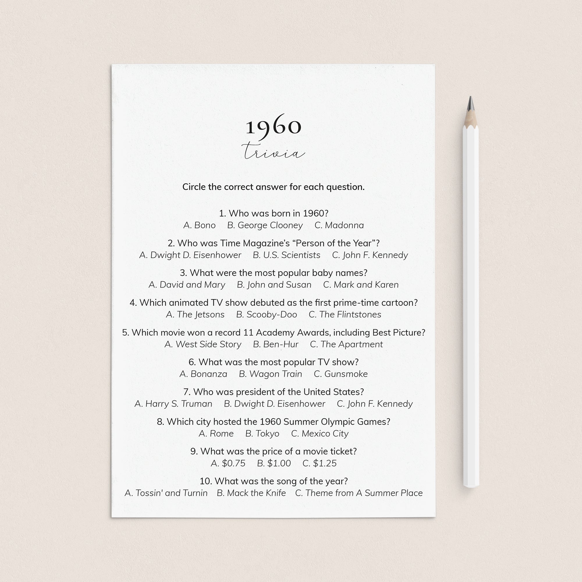 This "Married in 1960 - 65th Wedding Anniversary Games Bundle" includes the following 12 games and activities: