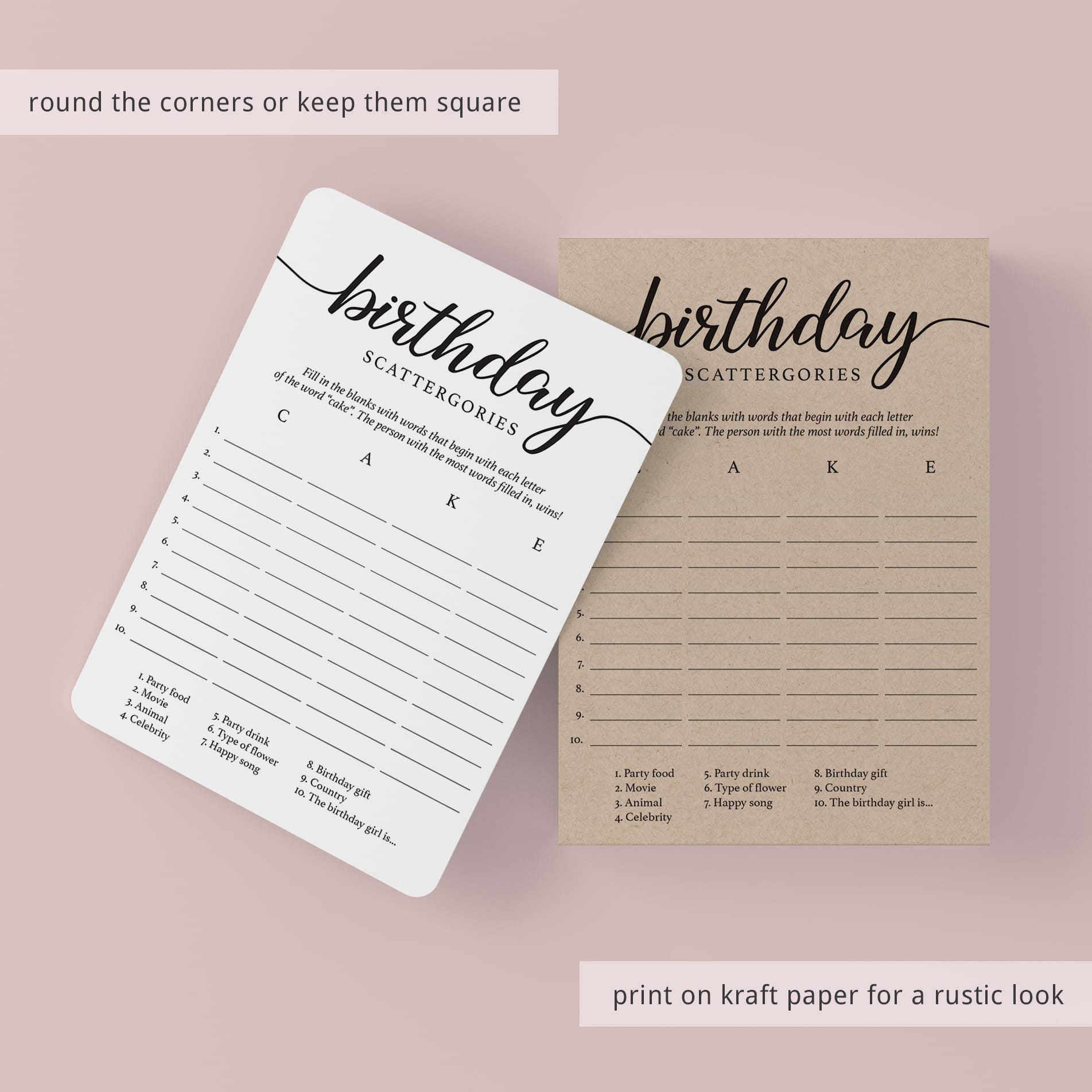 Are you hosting a women's birthday party and looking for some last-minute entertainment? Look no further! These calligraphy birthday games for her will be the perfect addition to your party. This budget-friendly printable birthday game bundle will fit any women's birthday party theme.