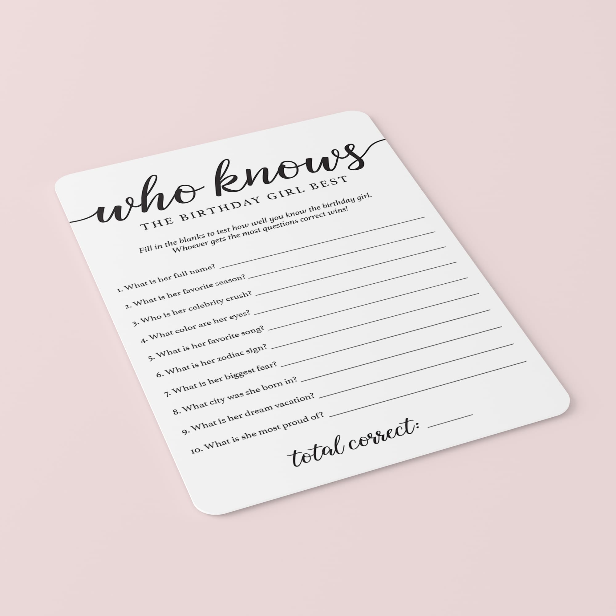 • Who Knows The Birthday Girl Best (in US English and AU / UK English)