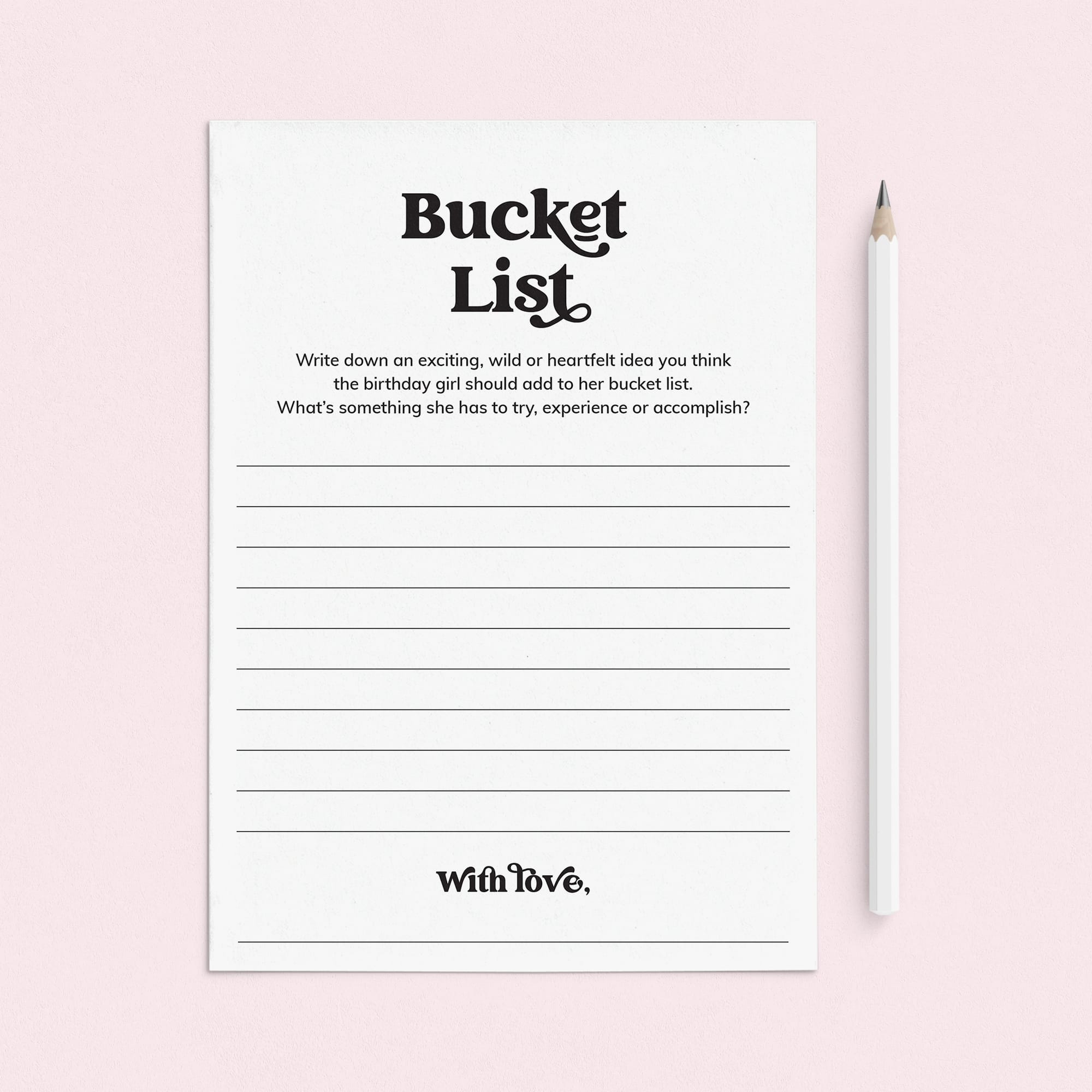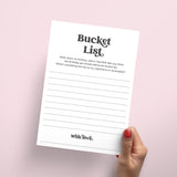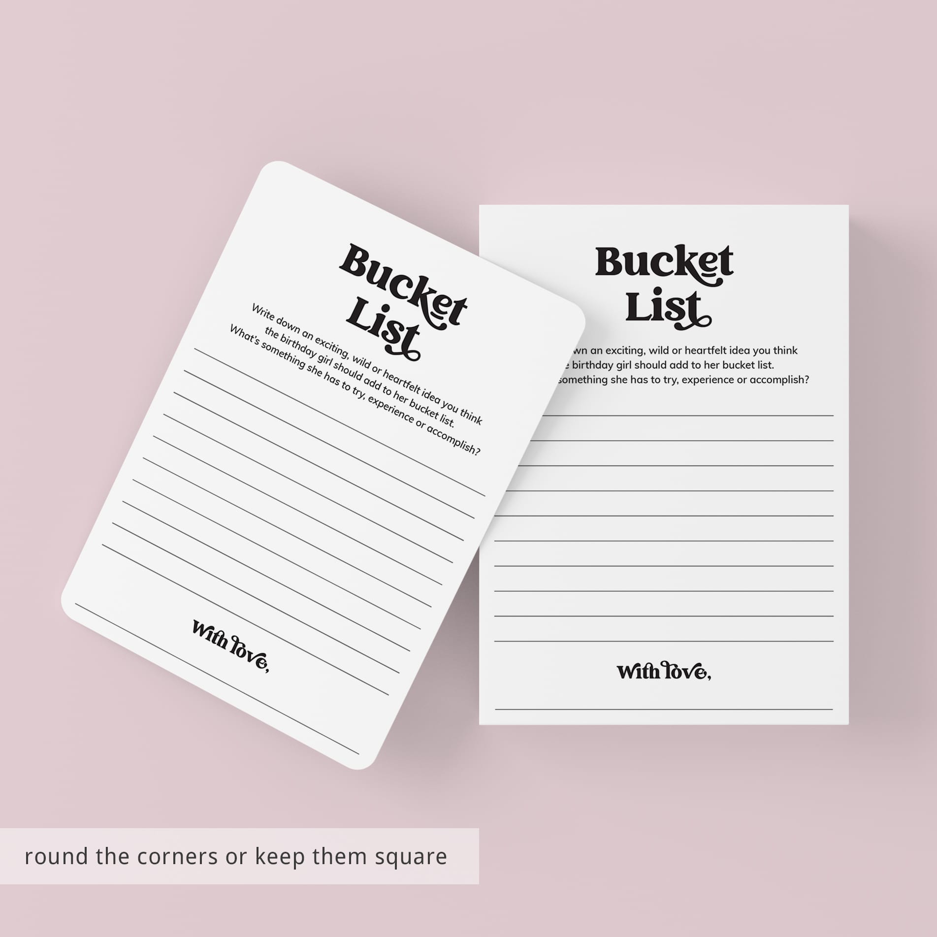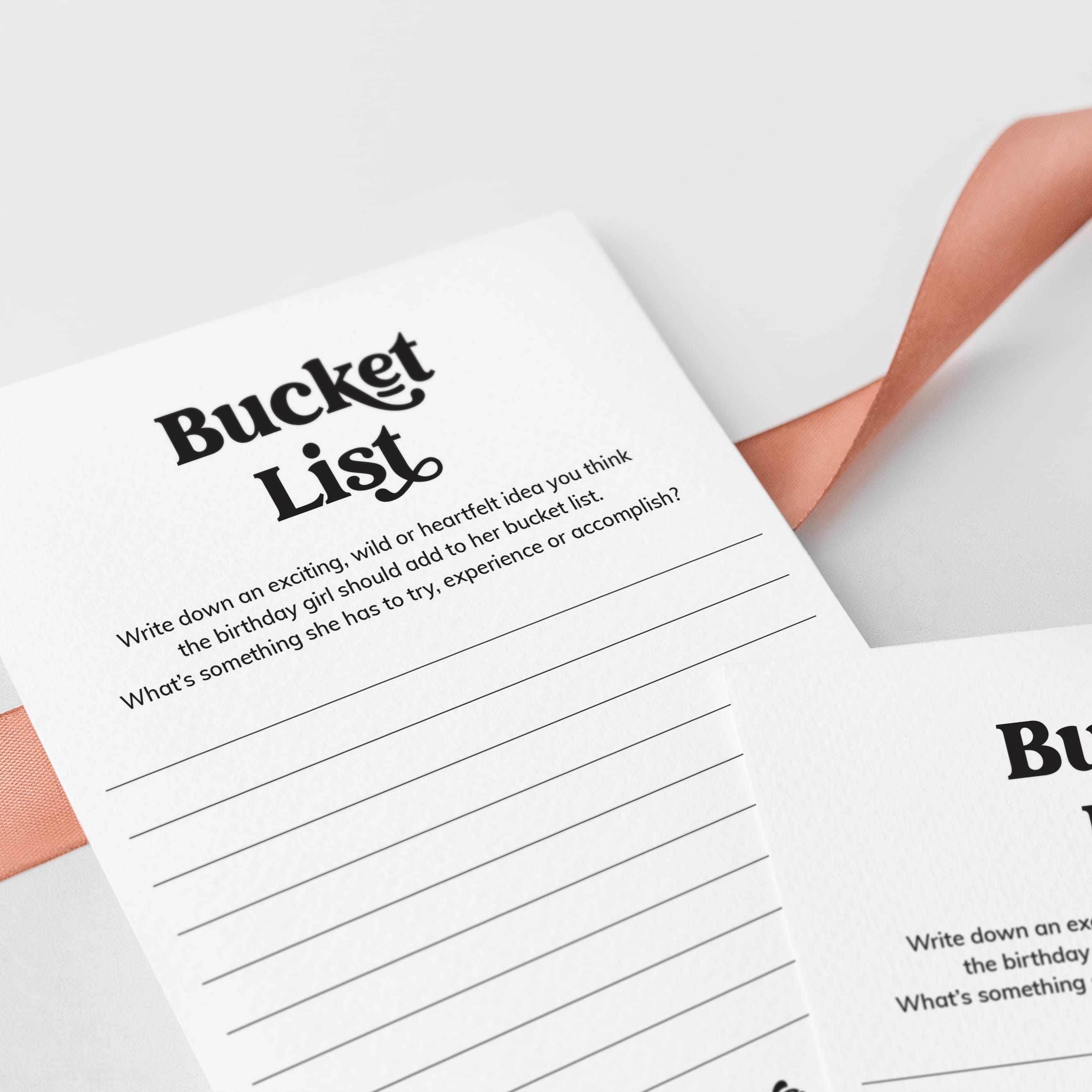 Make the birthday celebration unforgettable with these stylish black and white Birthday Bucket List cards with creative vintage script. A meaningful activity and keepsake all in one, these cards invite guests to share their most exciting, wild, or heartfelt ideas for the birthday girl’s bucket list.