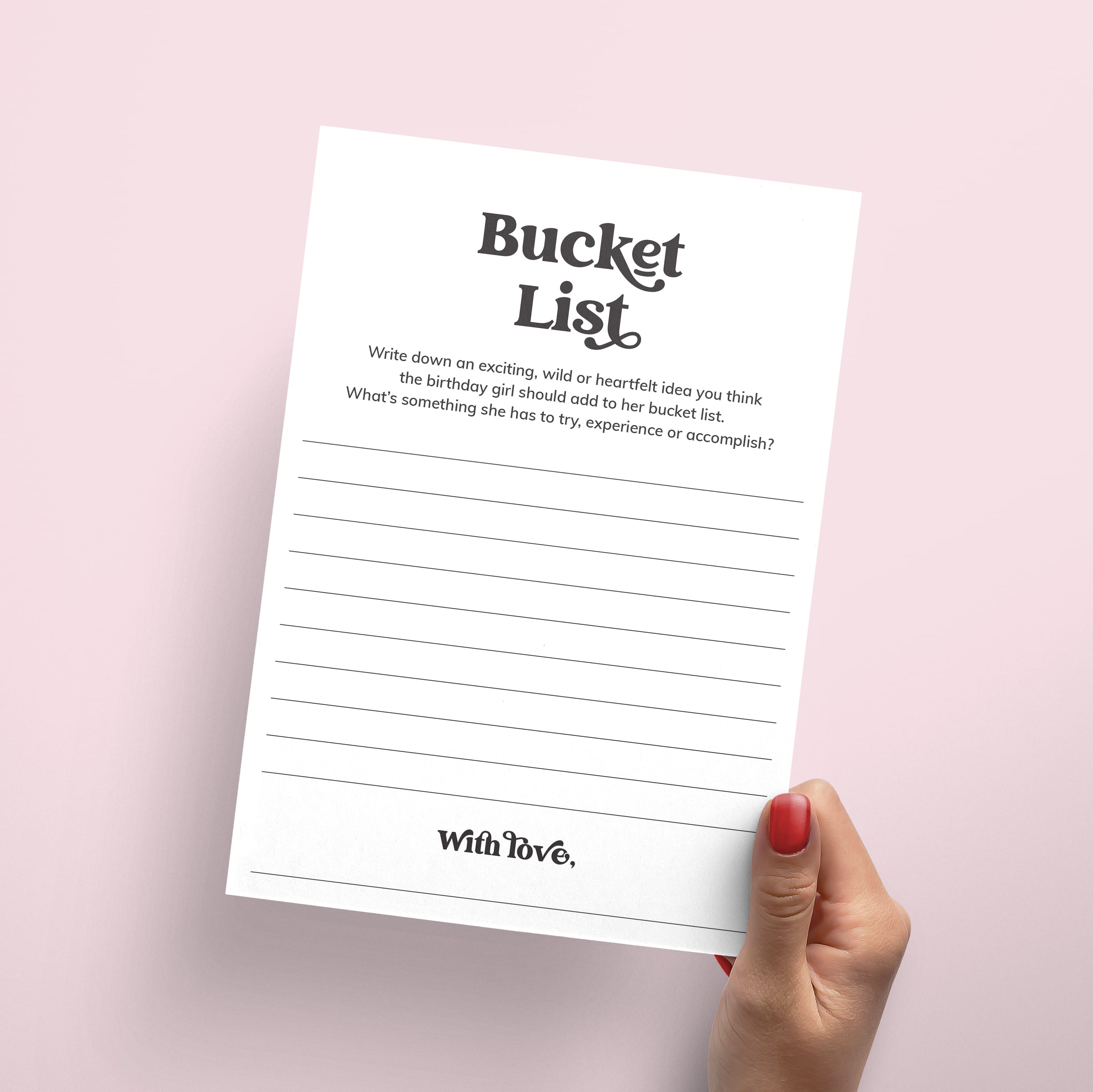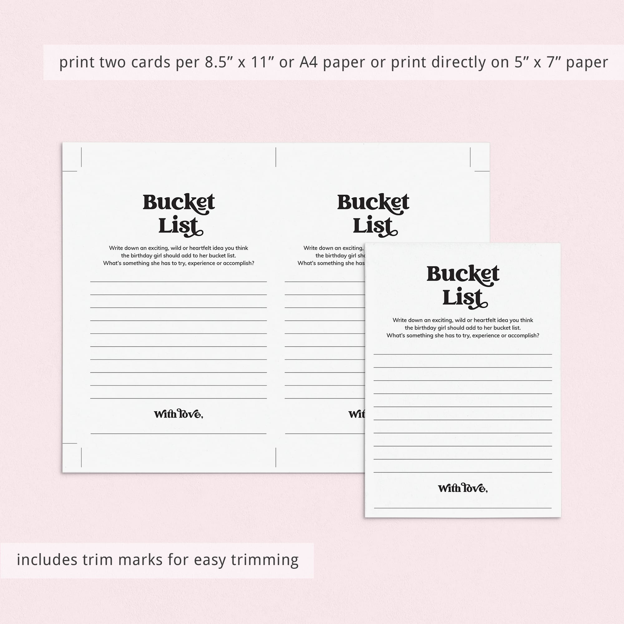This birthday bucket list card is an instant download. After purchase you will receive a download link immediately on screen. Also within minutes of your order and payment, an e-mail will be sent to you with a link for your download.