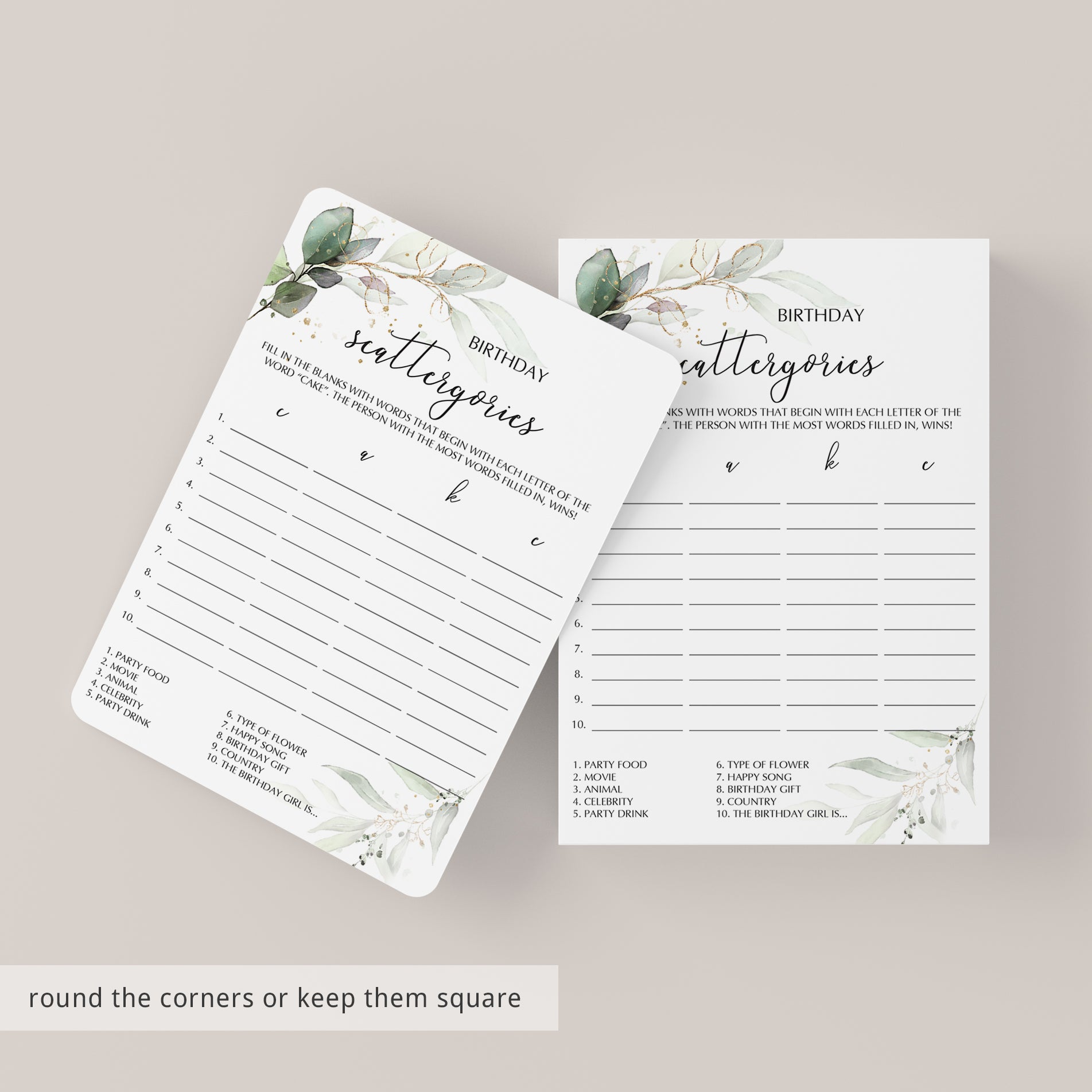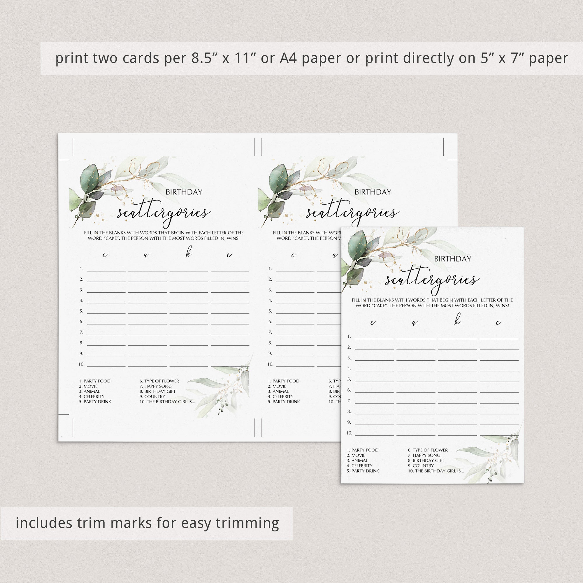 Birthday Scattergories Game Printable Greenery Theme by LittleSizzle