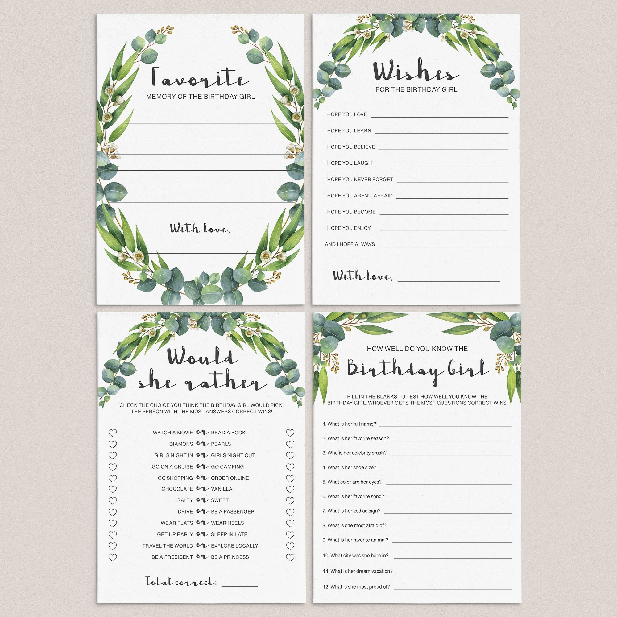 Print the games right from your computer in a matter of minutes or have the greenery birthday cards printed at your favorite print shop. We recommend printing on a nice heavy card stock for highest quality feel.