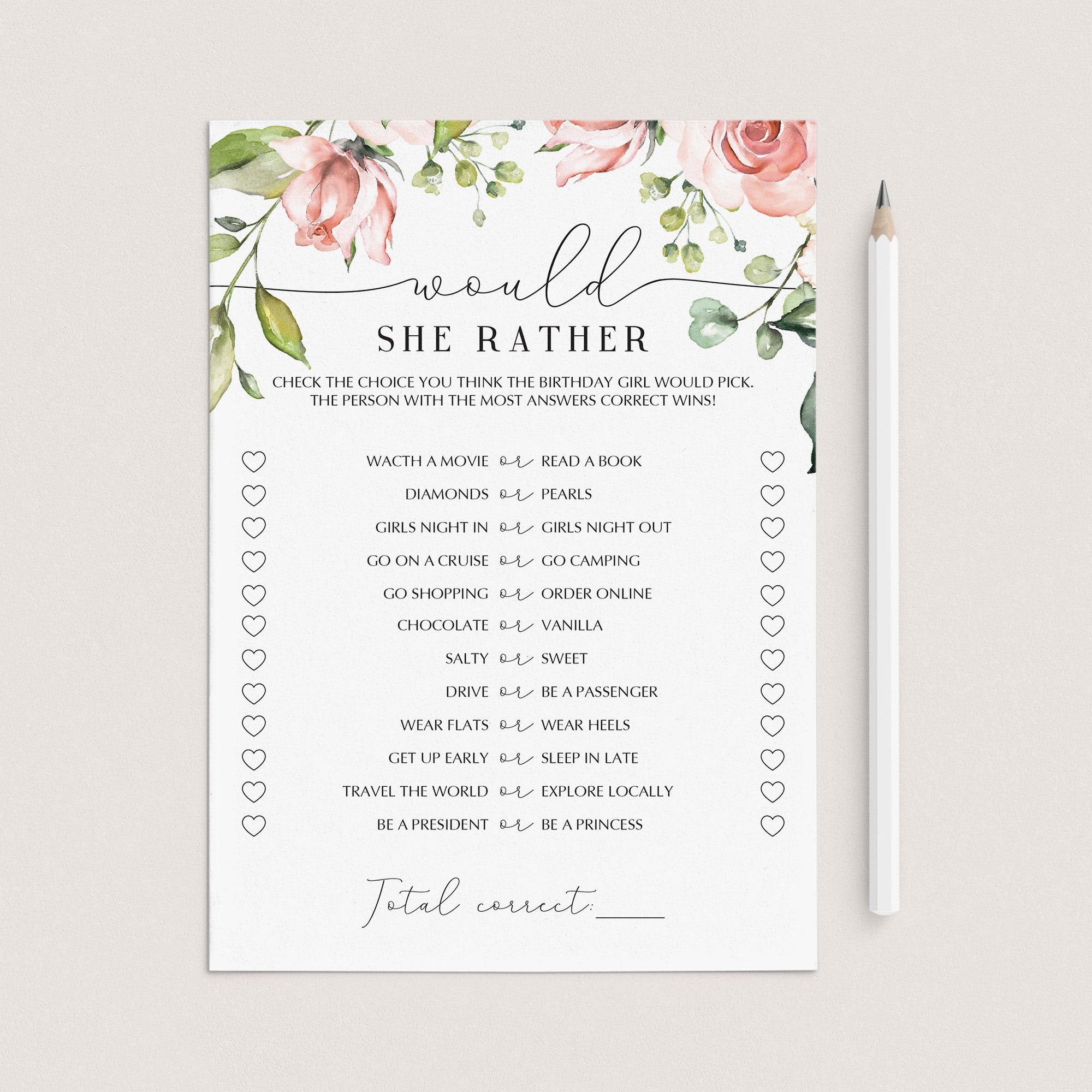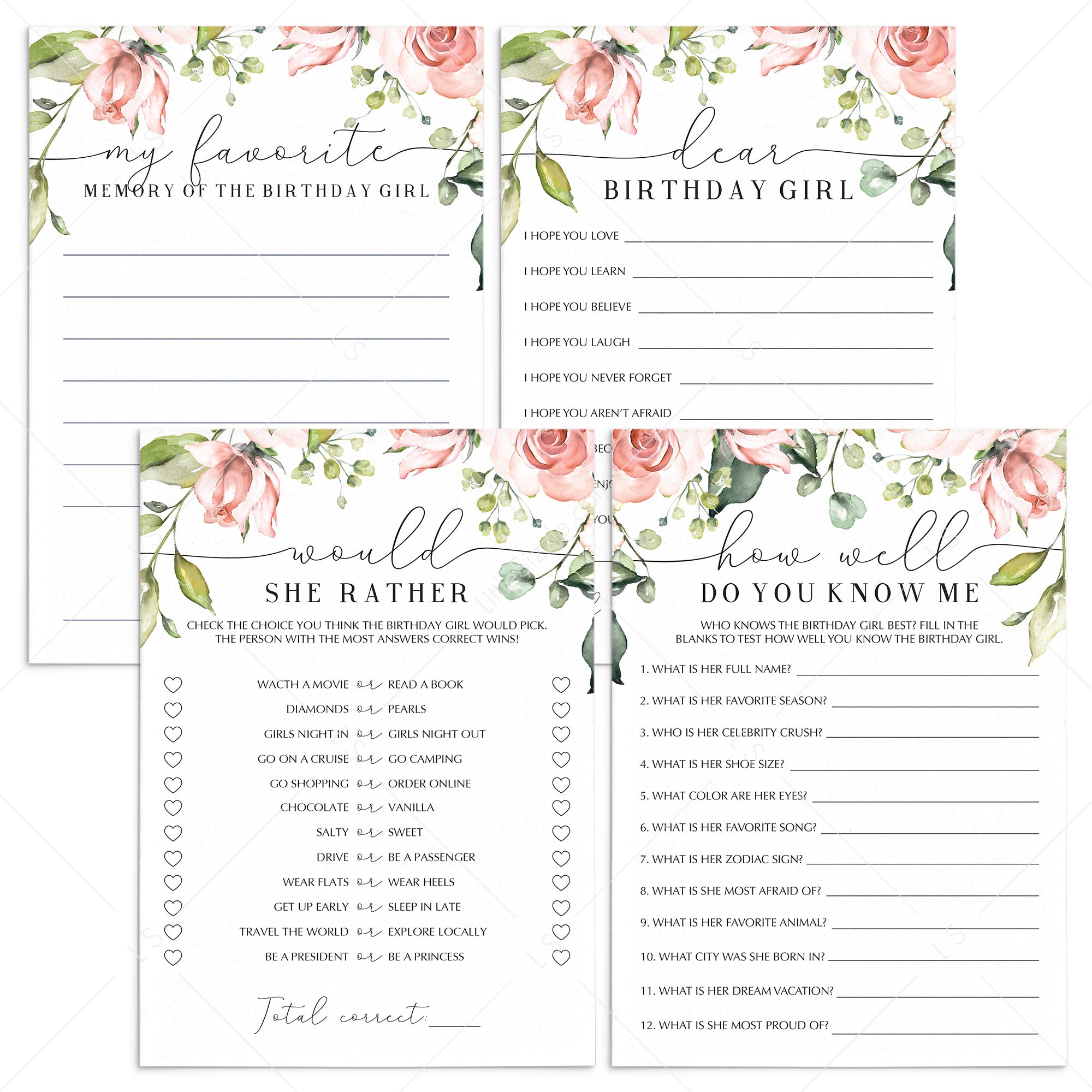 Are you having a birthday brunch? Add some fun to the celebration and create meaningful keepsakes for the birthday girl with these gorgeous blush floral birthday games. Whether you're celebrating a sweet sixteen party, your BFF's 30th birthday, your co-worker's turning "forty and fabulous," or your mother's turning 57 for the twelfth time, these floral birthday games will get everyone involved.