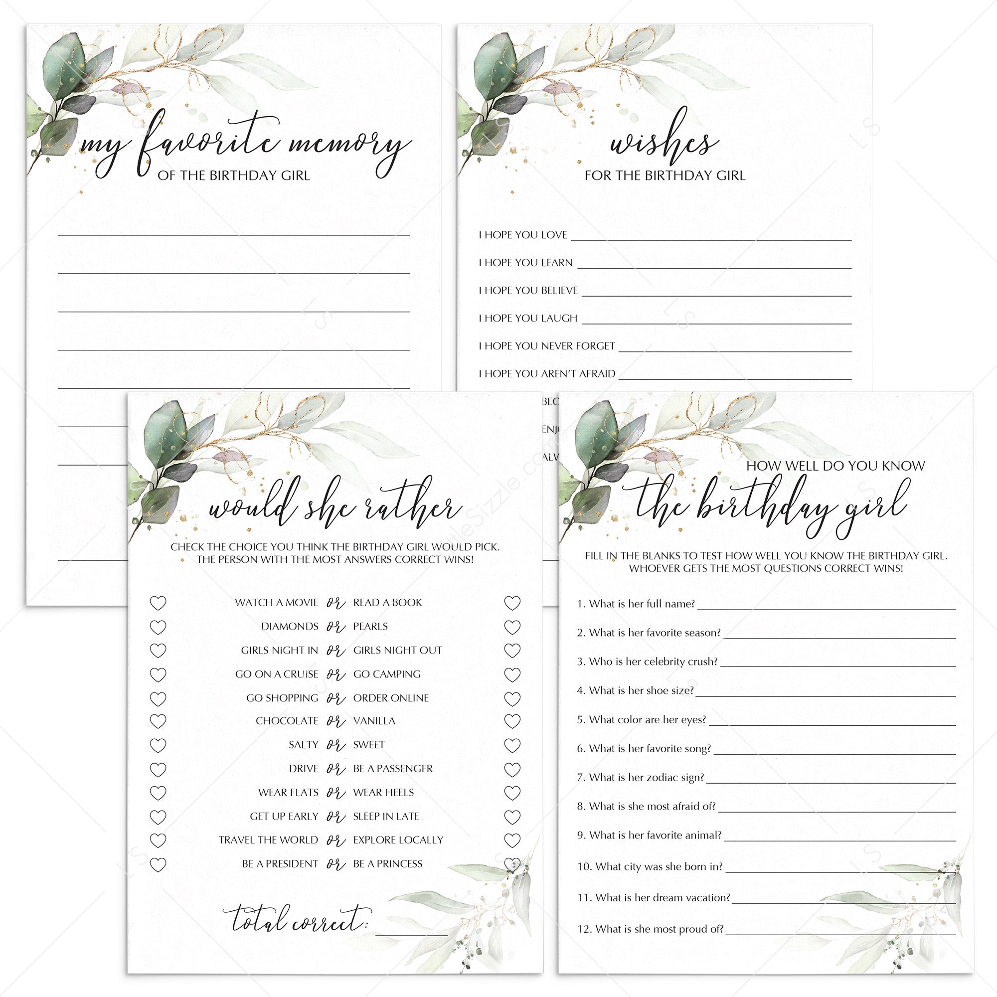 Print the games right from your computer in a matter of minutes or have the greenery birthday cards printed at your favorite print shop. We recommend printing on a nice heavy card stock for highest quality feel.