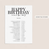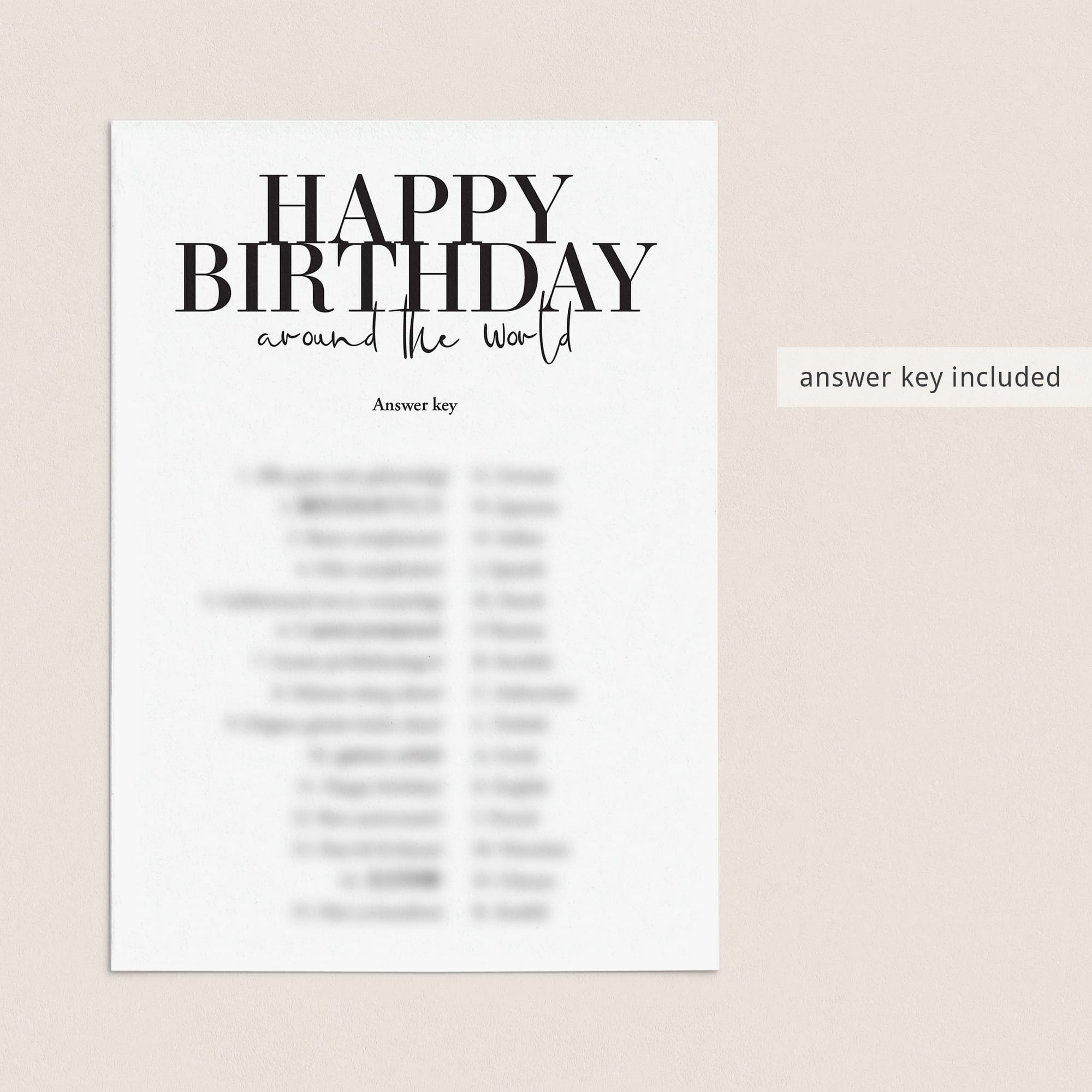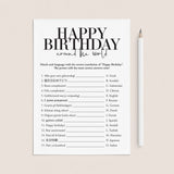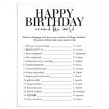 The game is very easy to play. Print and distribute these modern black & white Birthday Around The World game cards and a pen to each of your guests. They have to match each version of the words “Happy Birthday” with its language of origin. The person with the most correct answers wins.