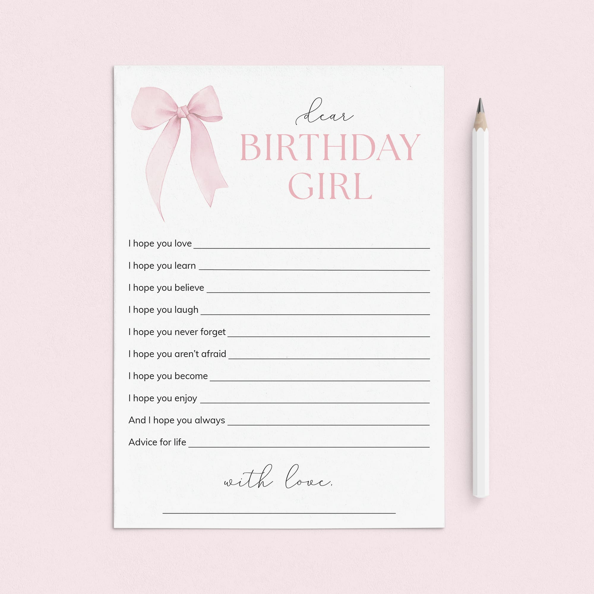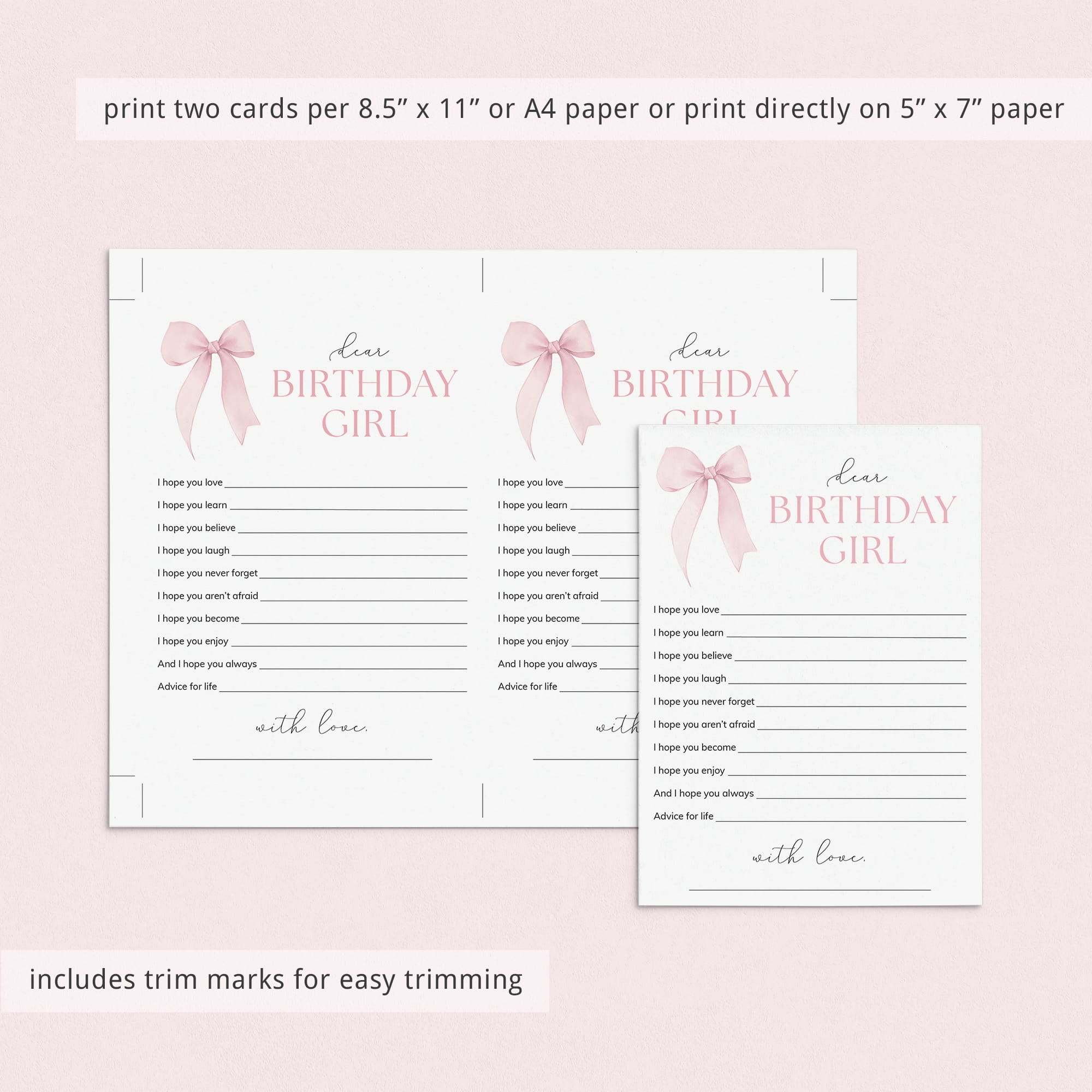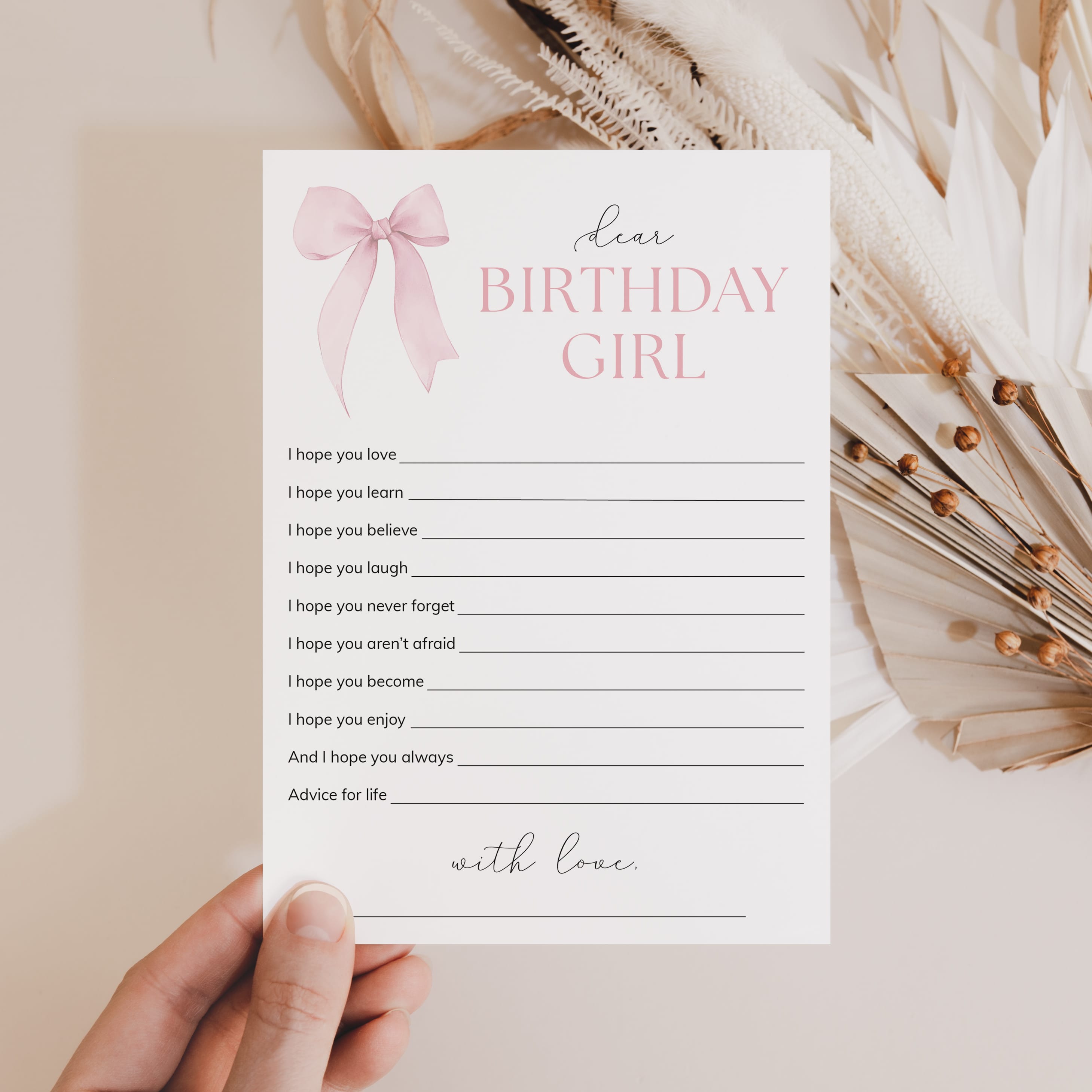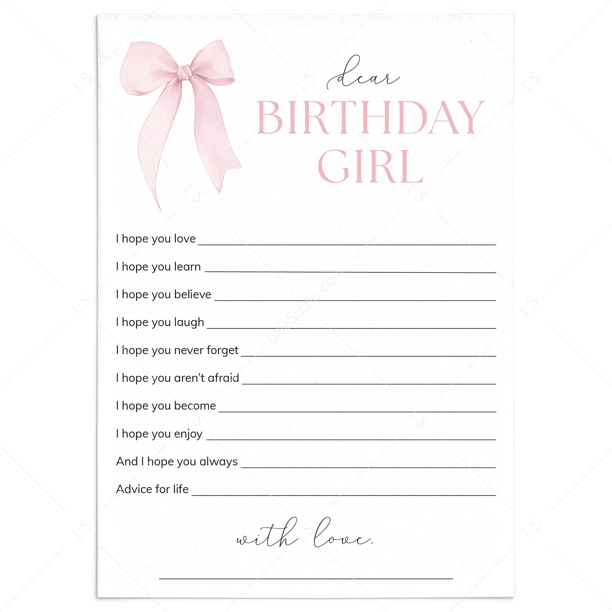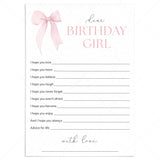 Create an amazing keepsake for the birthday girl with these Pink Bow Birthday Wishes for the Birthday Girl Cards. The elegant pink birthday wishes cards will fit any birthday party theme. Let every guest write down their wishes for the birthday girl and collect the cards for the lucky girl.