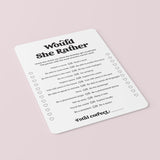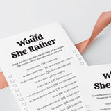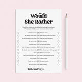 Are you looking for the perfect icebreaker to get people talking and in the party mood for your birthday party? Play Would She Rather! After all, your guests have one thing in common: you know the birthday girl. This black and white Would She Rather birthday game 12 Would She Rather questions is the perfect addition to a birthday party for a woman of any age.