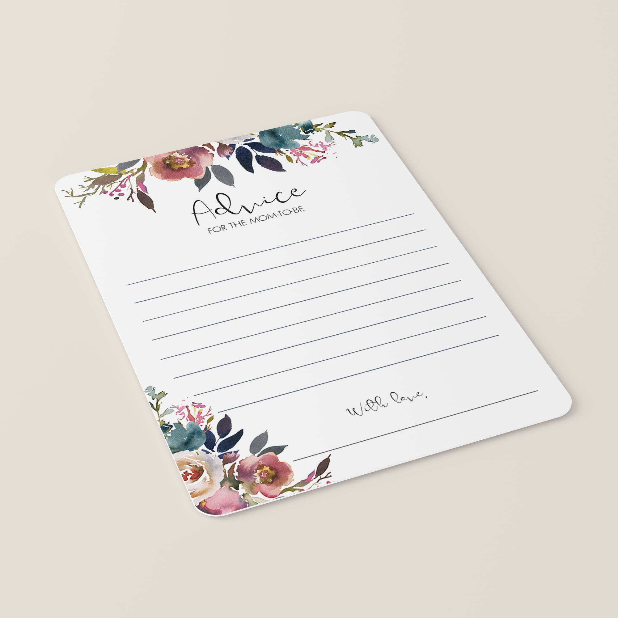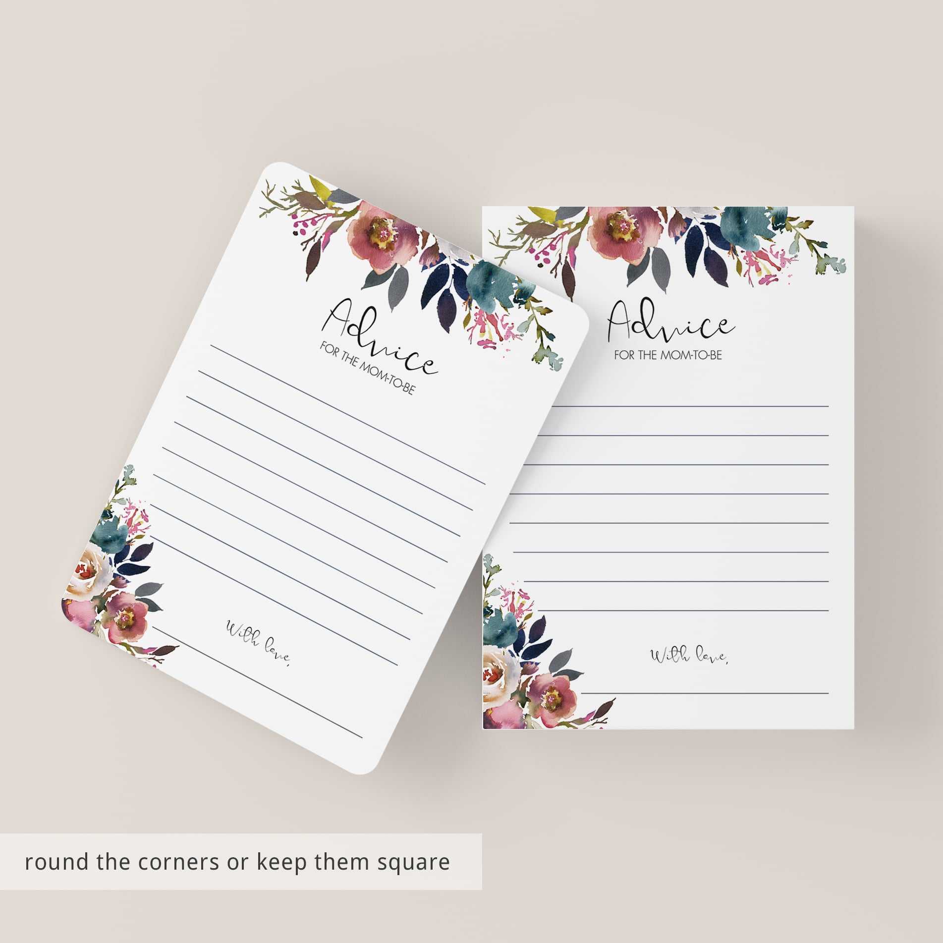 Create a meaningful keepsake for the mom to be with these gorgeous boho floral baby shower advice cards. Let every guest write down their advice and collect the elegant cards for the lucky mom-to-be.