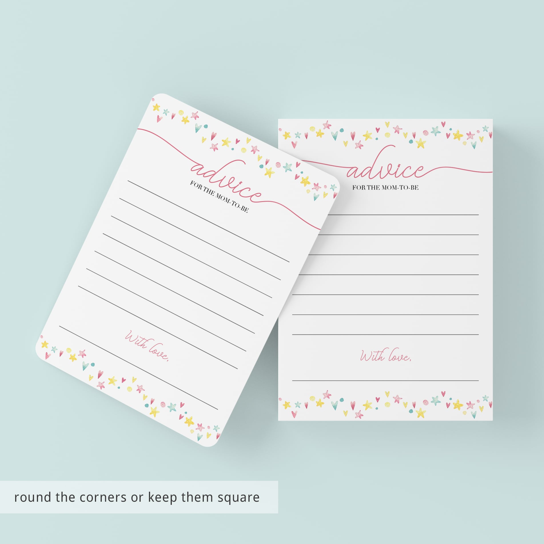 Let your guests write down their words of wisdom for the mom to be on these cute pink baby advice cards with sweet stars!