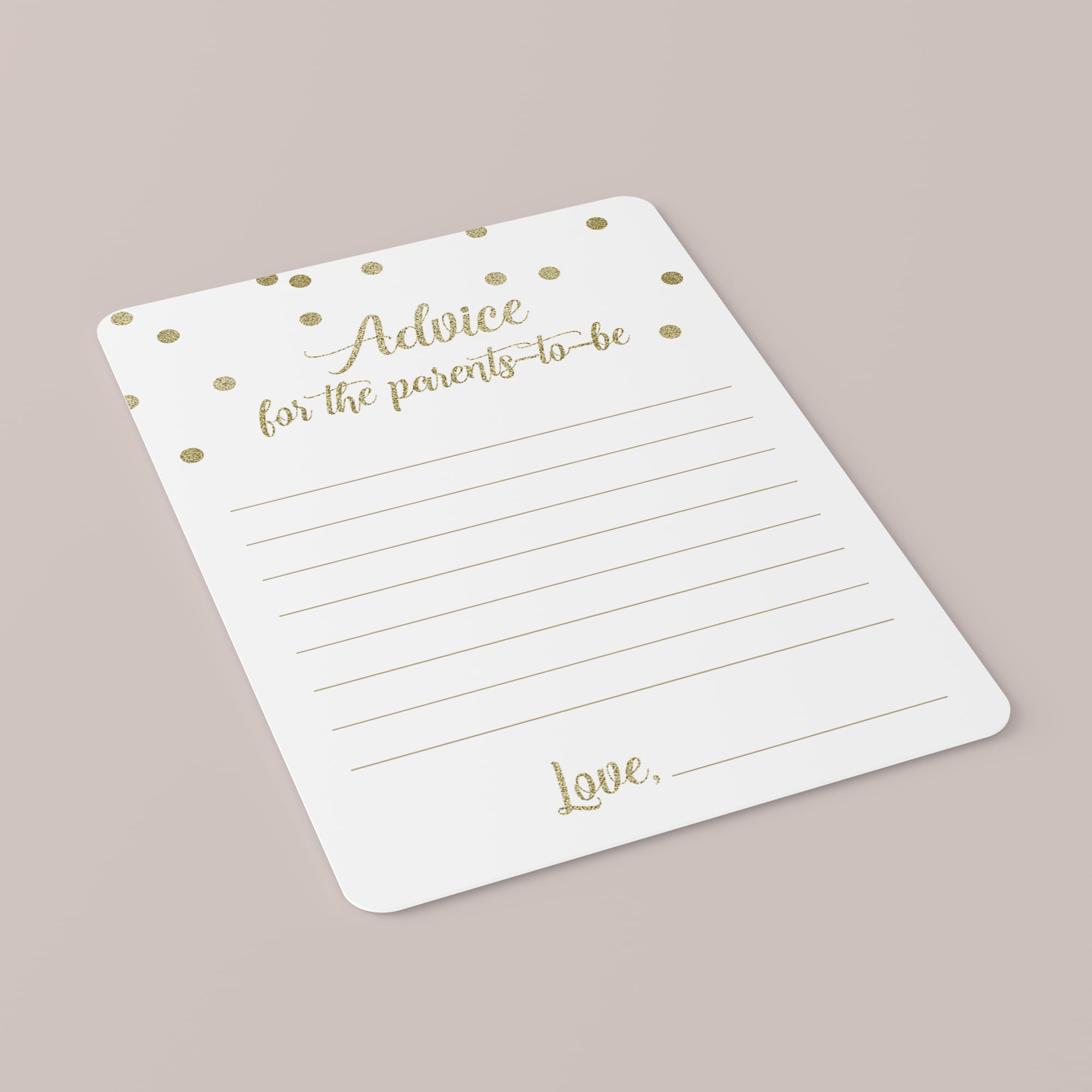 Let your guests write down their words of wisdom for the parents to be on your beautiful gold advice cards!