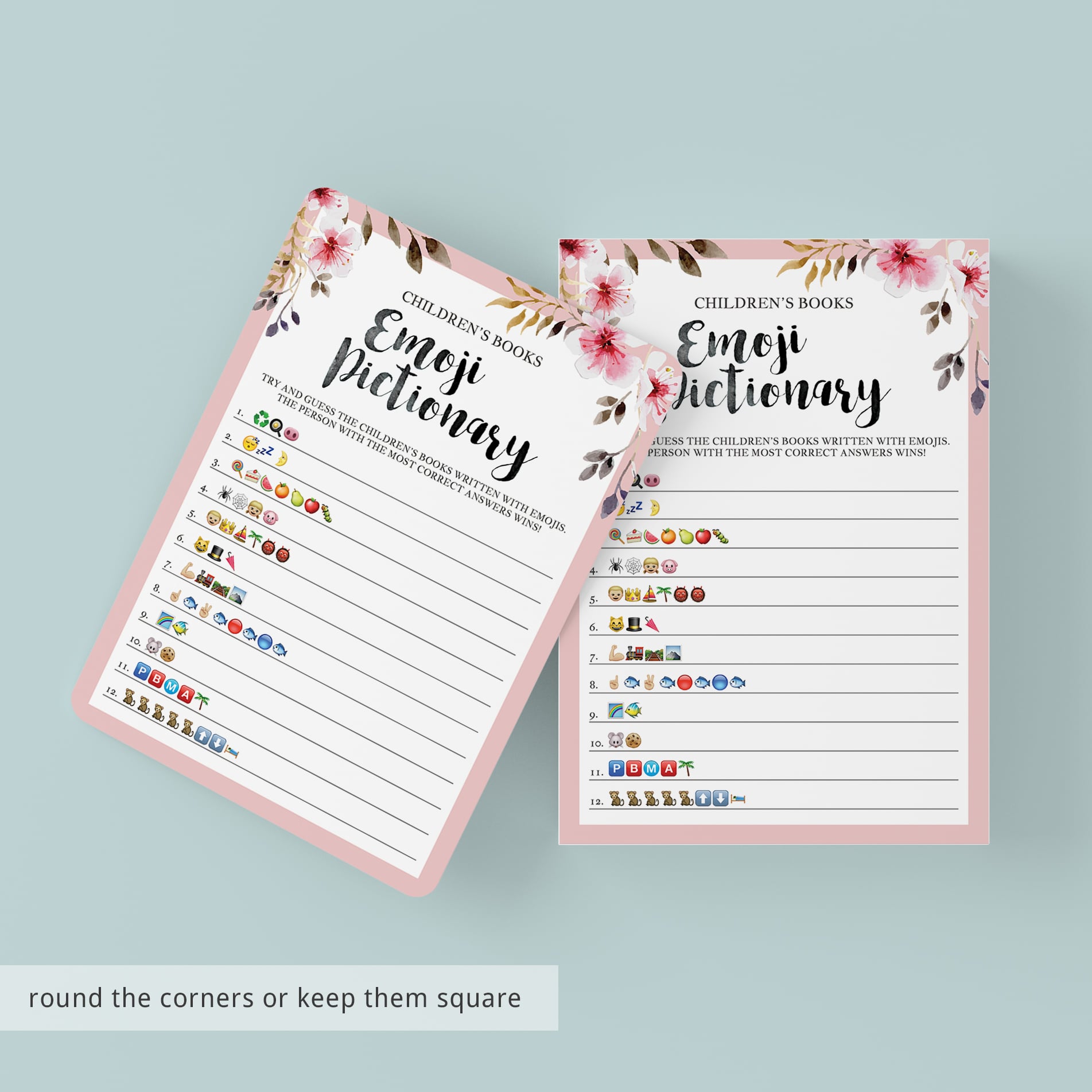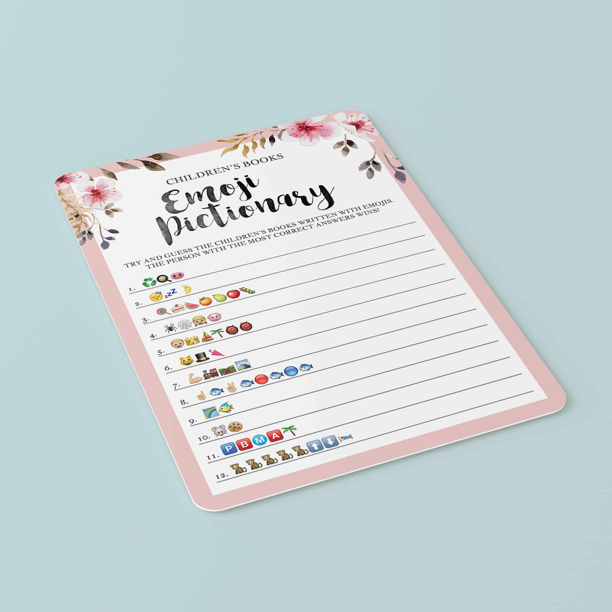Are you looking for a unique baby shower game? Play Emoji Pictionary with this beautiful blush Emoji Pictionary game with watercolor flowers. The game is perfect for a girl baby shower.