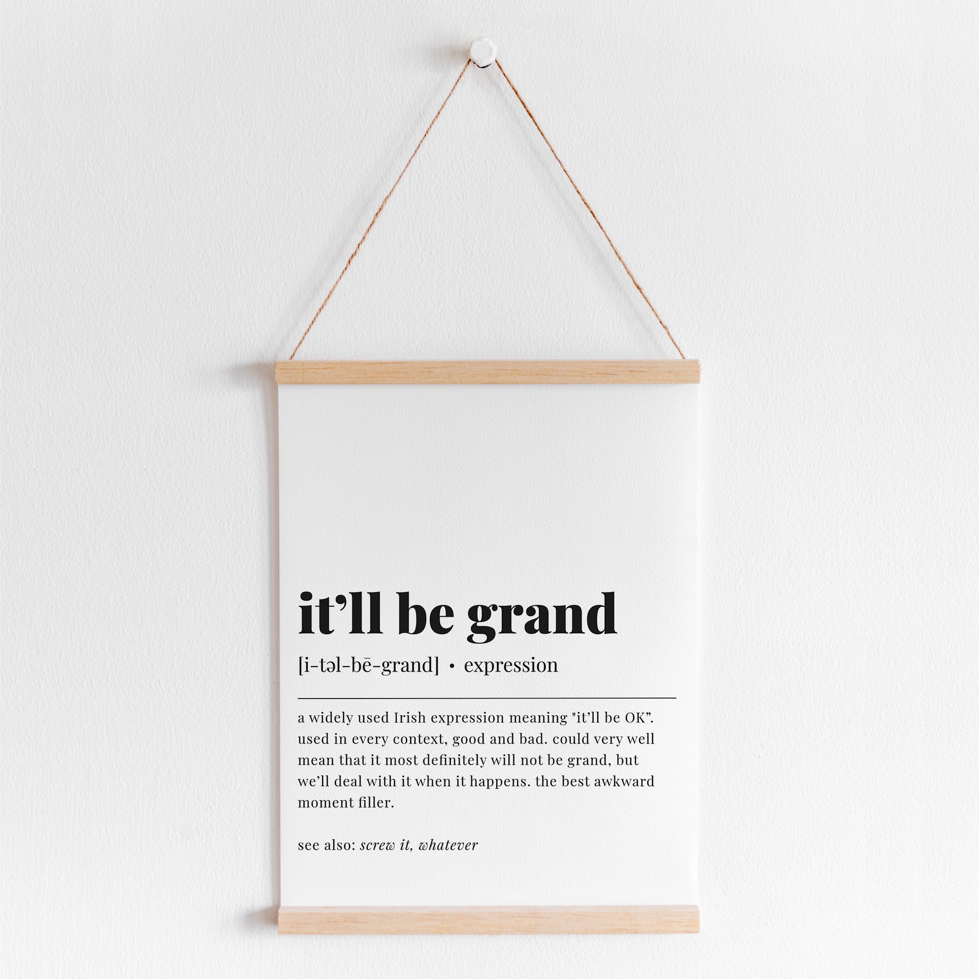 Are you looking for a funny Irish print? Look no further! This modern minimalist it'll be grand definition print is perfect for you. It is one of the most used phrases in the whole island of Ireland.