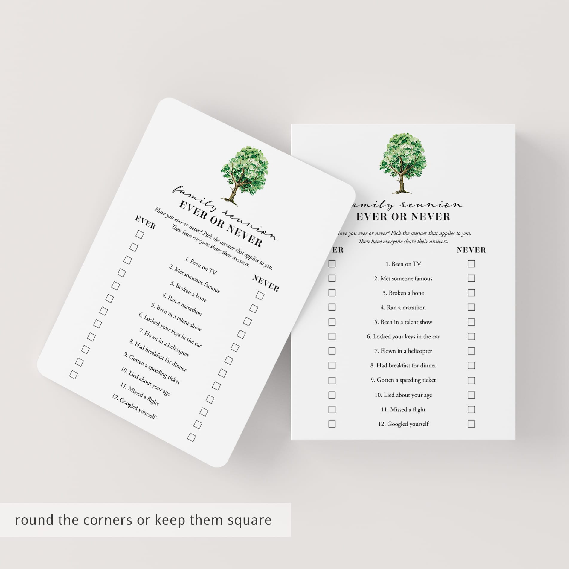 Printable Family Reunion Icebreaker Game Ever or Never by LittleSizzle