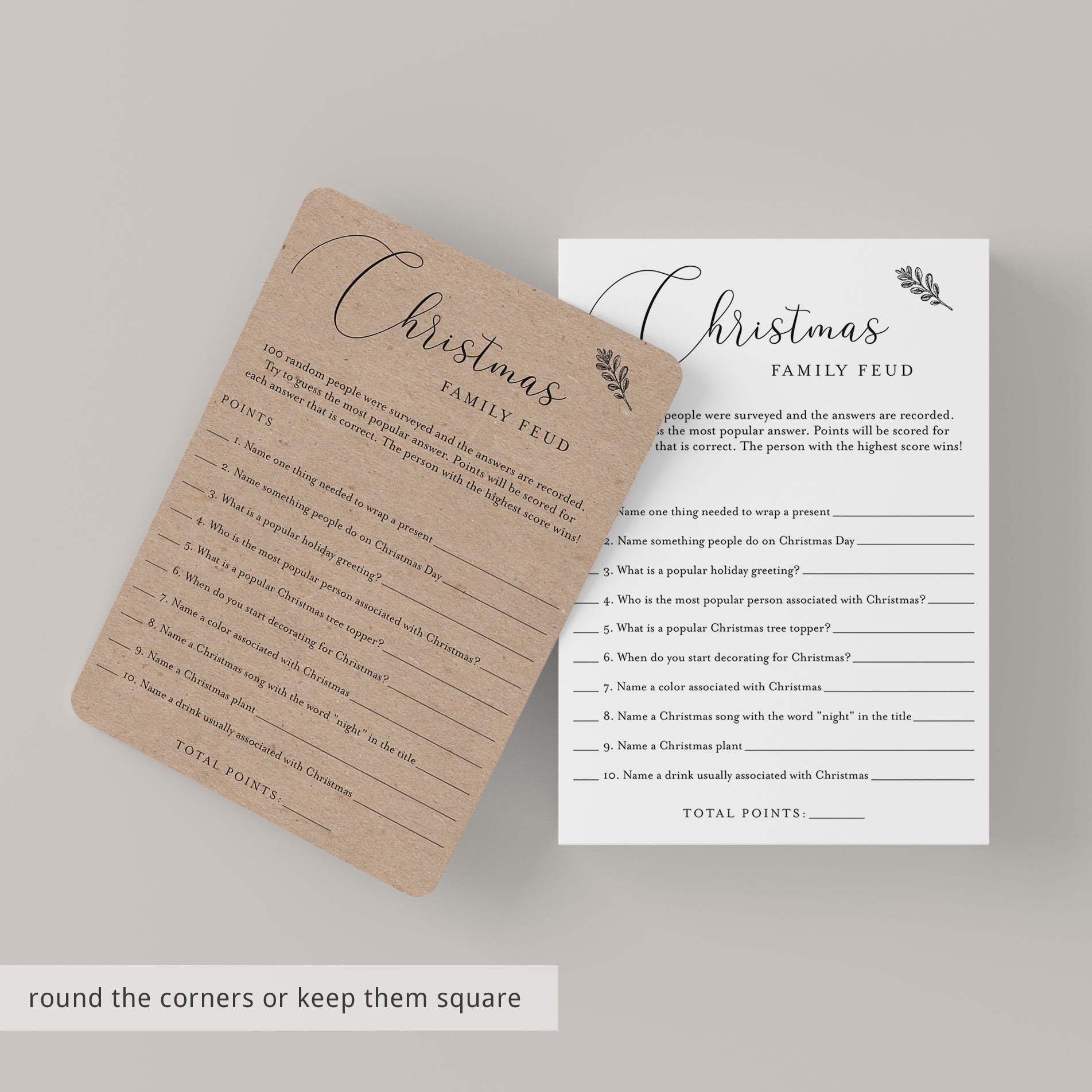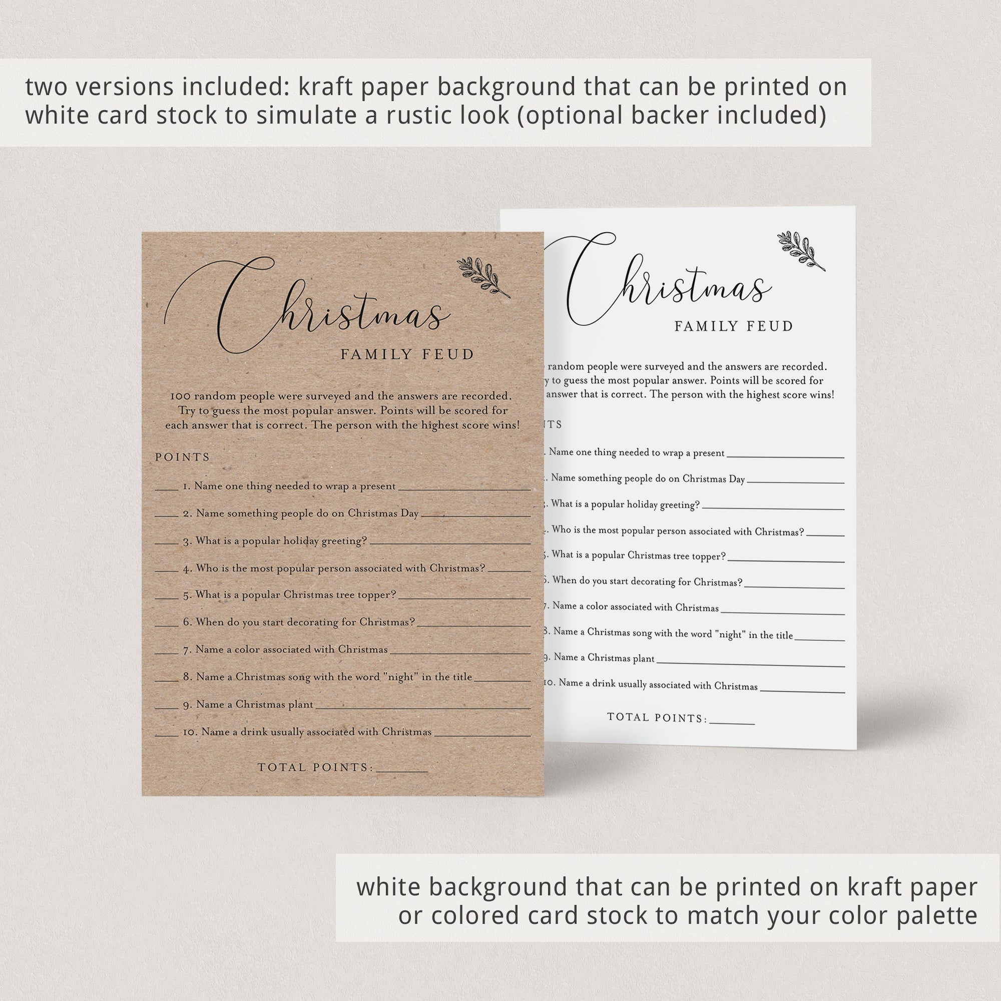 Christmas Family Feud with faux kraft background and white background, each: