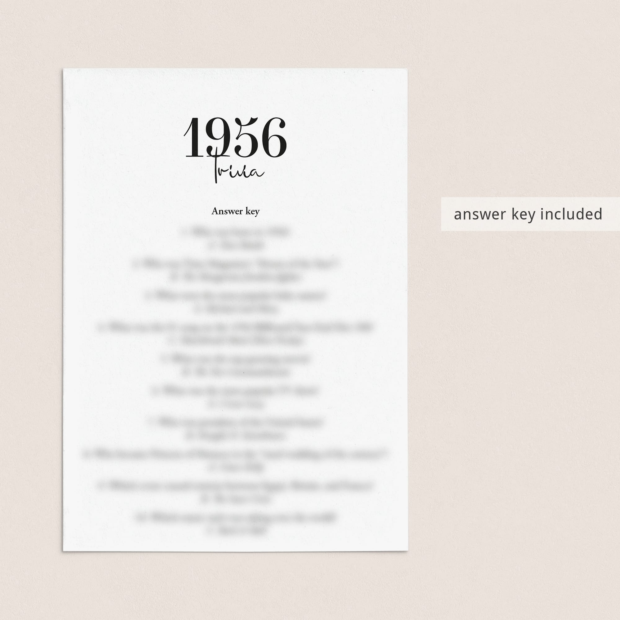 Just in case you are having trouble figuring out the answers, an answer key with the 1956 trivia answers is included.