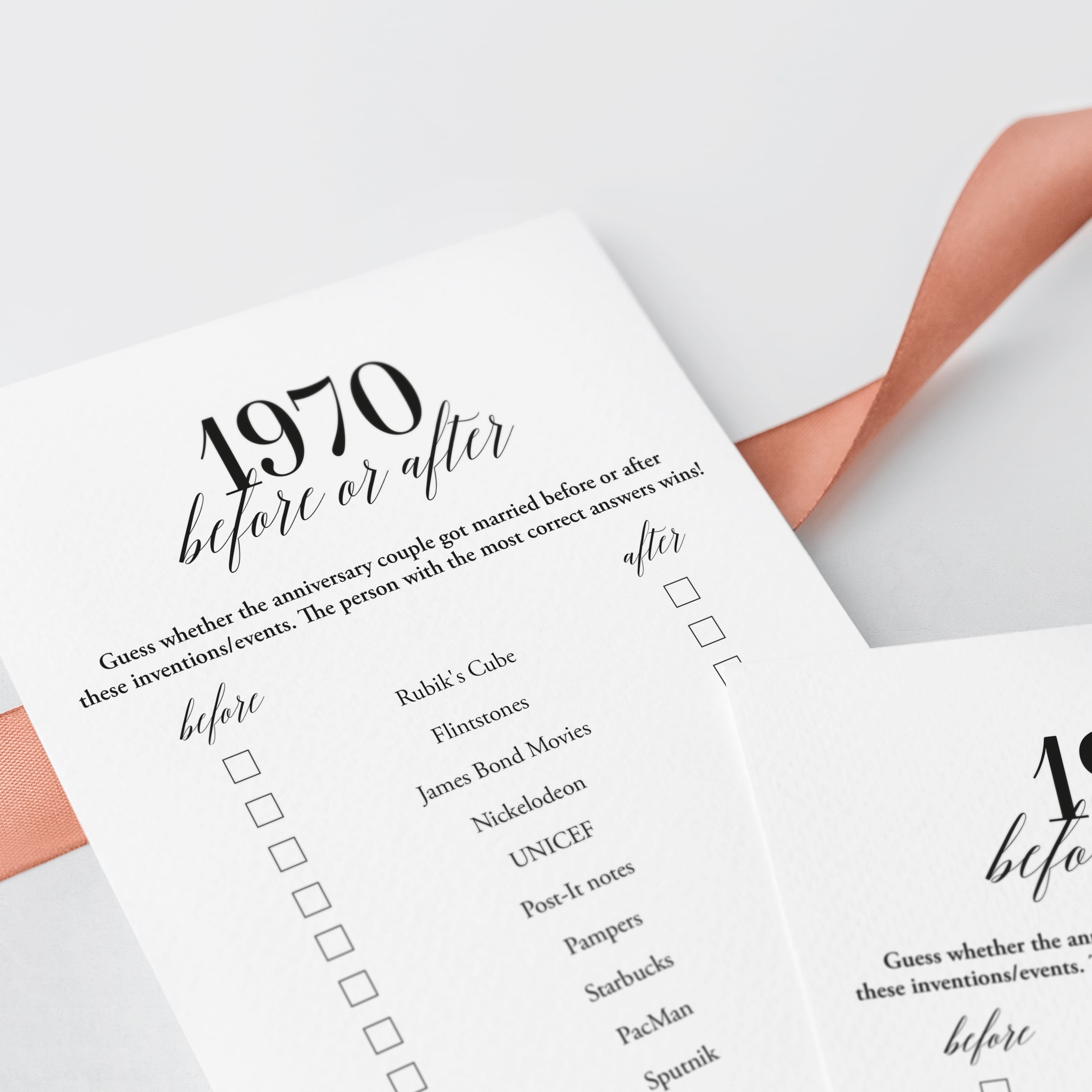 Celebrate a once-in-a-lifetime milestone with the Ultimate 55th Anniversary Party Games Bundle! Designed for couples married in 1970, this all-in-one package is the perfect solution to make your anniversary party stress-free and unforgettable.
