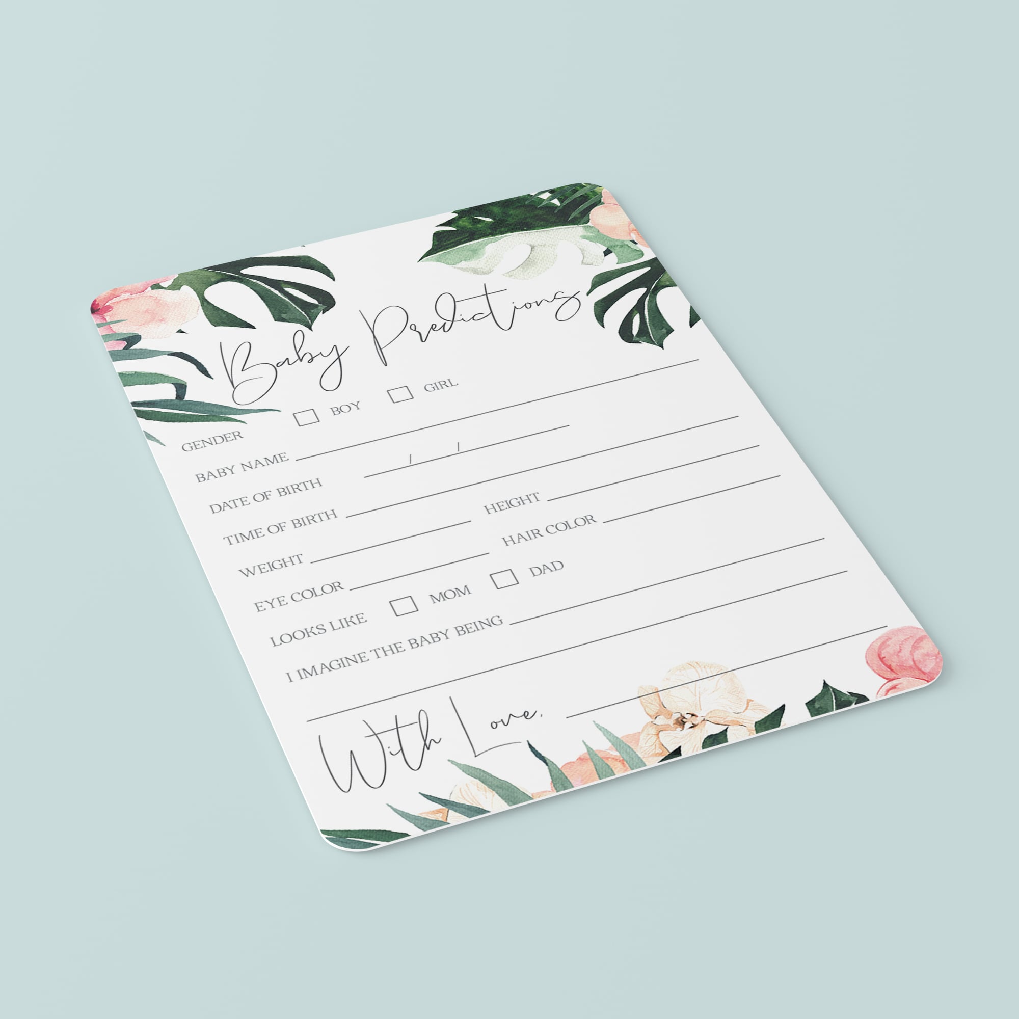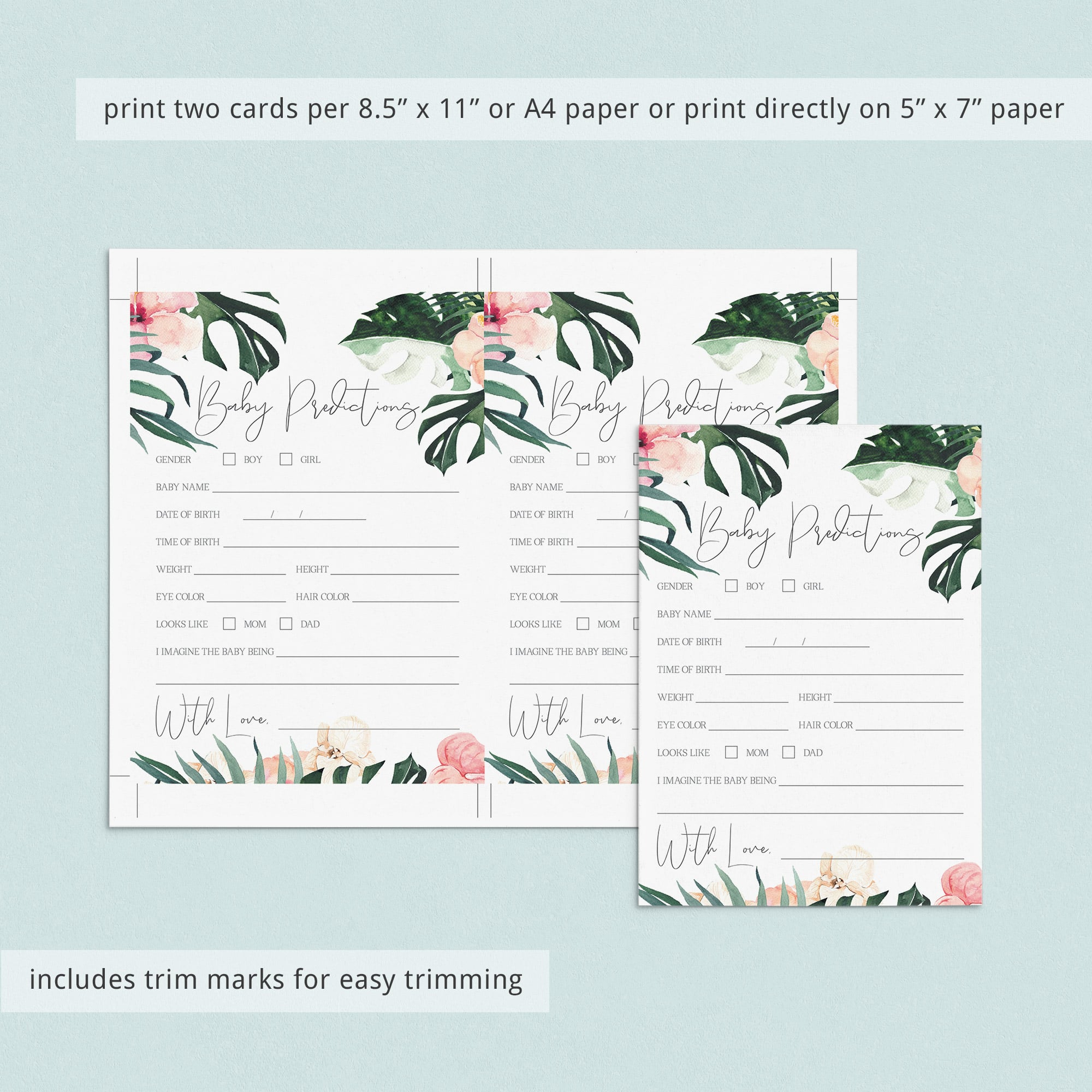 Create a beautiful keepsake for the mom-to-be with these tropical theme baby shower baby prediction cards. Baby Predictions is a fun game to engage your guests during the party and it makes a meaningful keepsake afterwards.