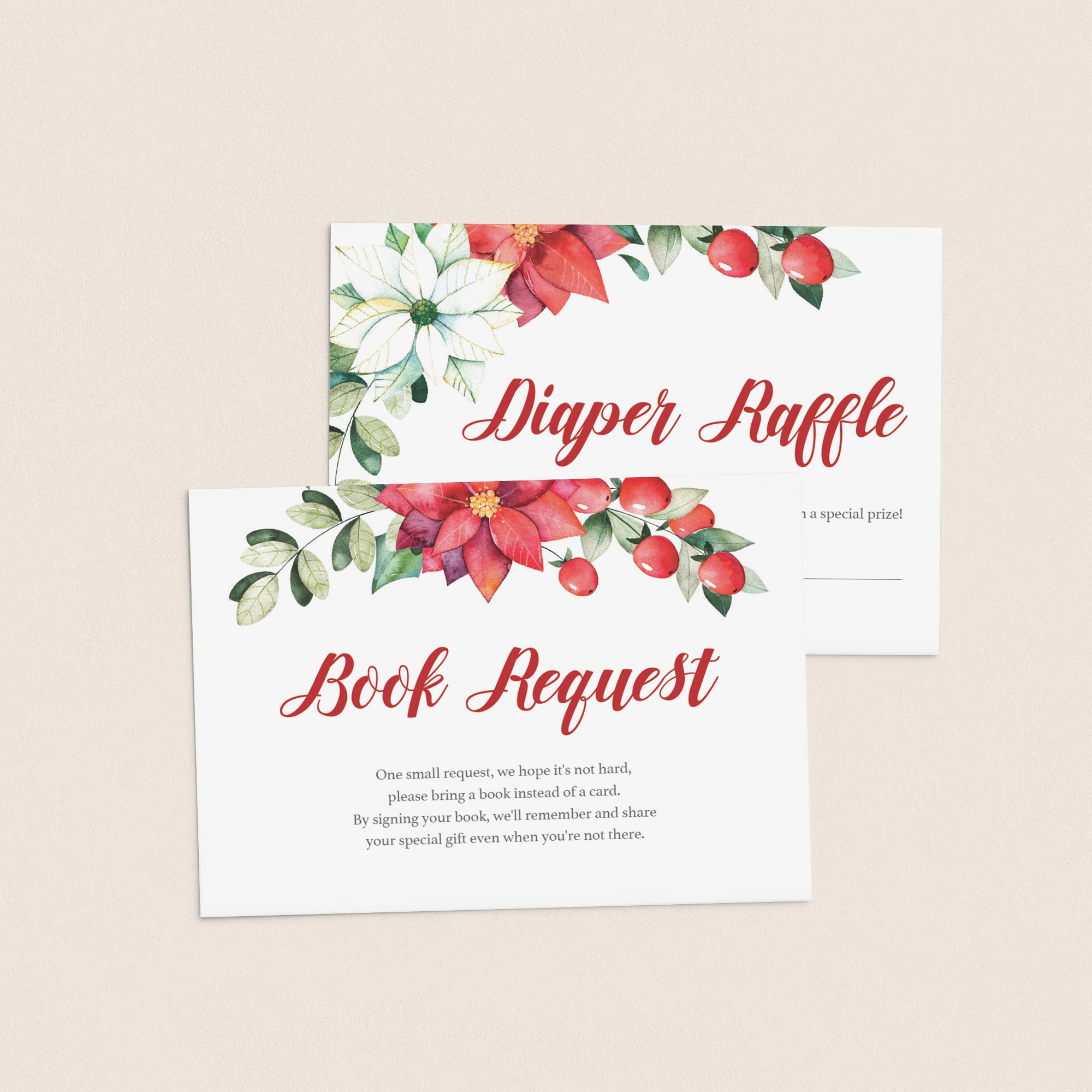 Oh baby! Let this elegant floral Christmas baby shower invitation set take your Christmas baby shower to the next level! The red and white flowers and green leaves will ensure that you have those special winter vibes at your baby shower. A Christmas baby shower works for either a boy or a girl. You will make the perfect announcement with this floral Christmas baby shower invitation set with poinsettia wreath.