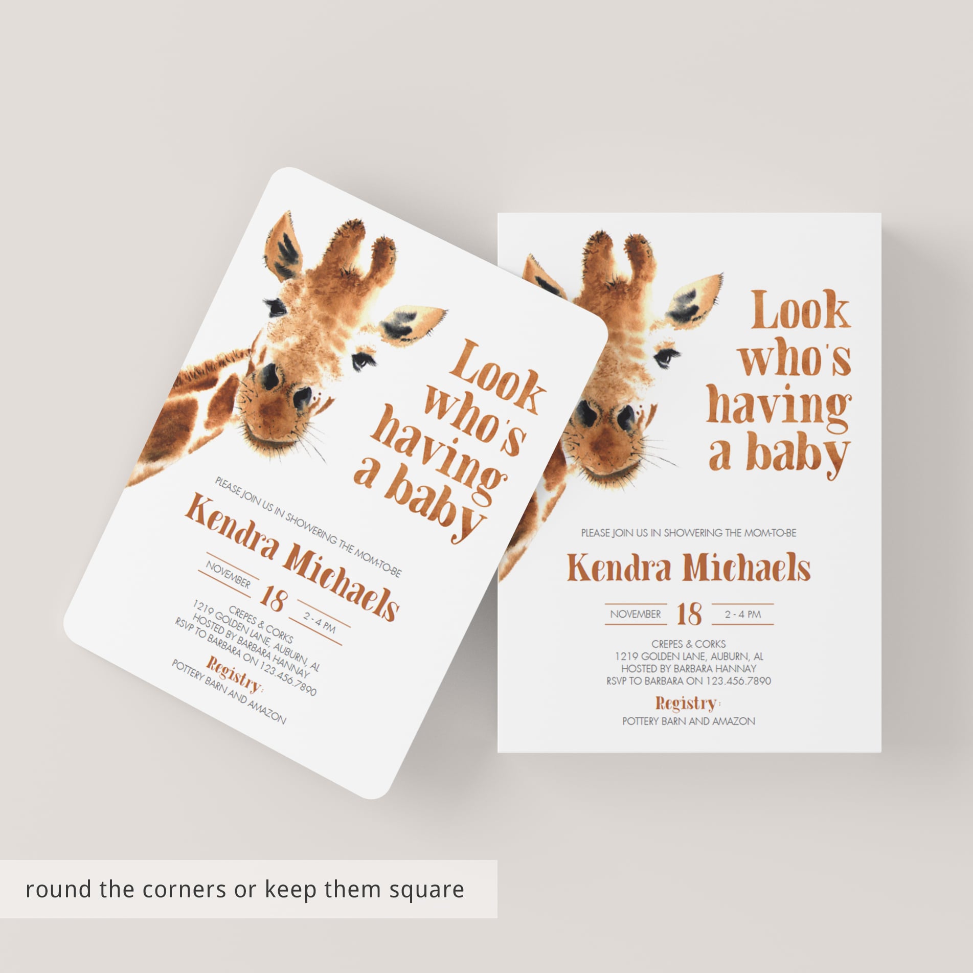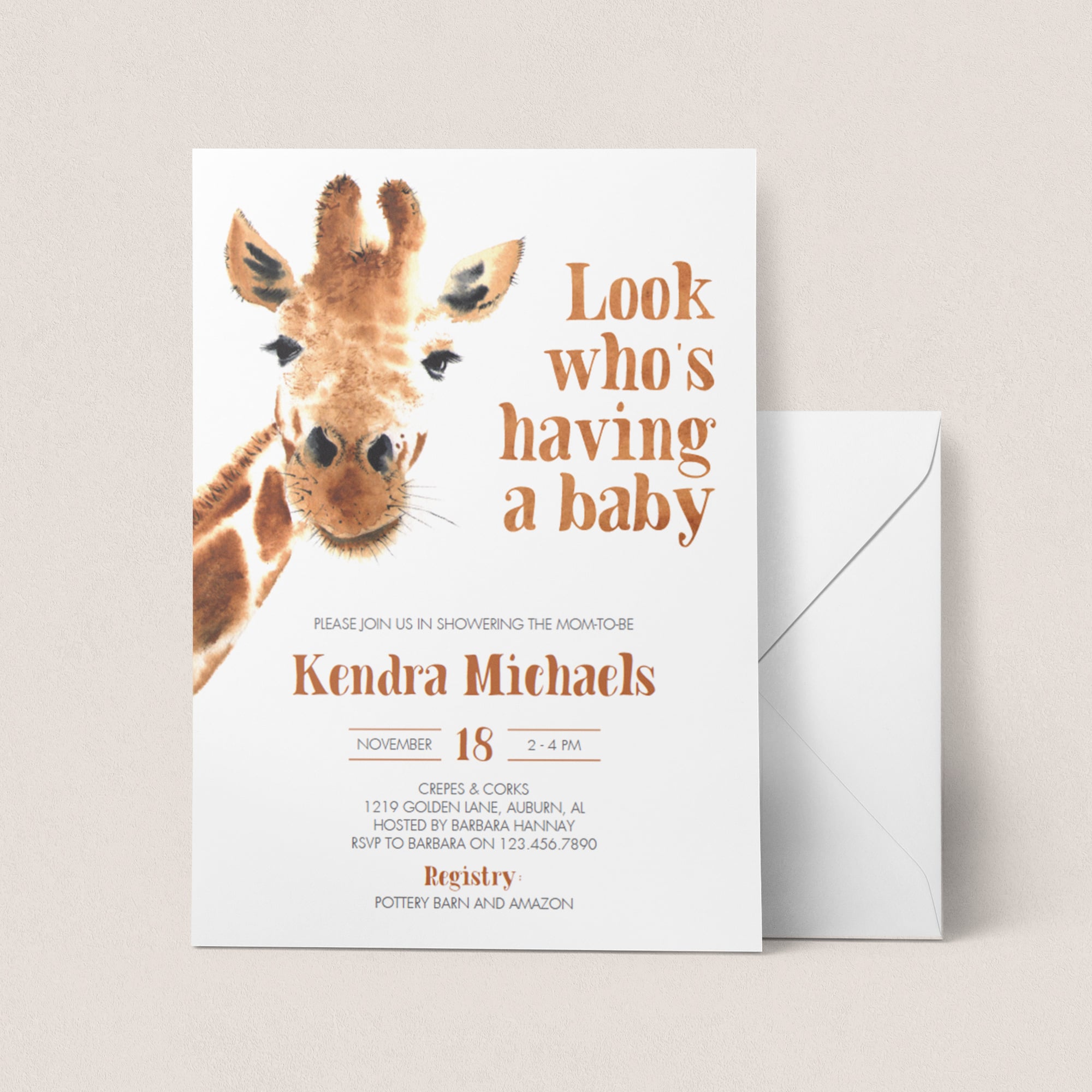 Look who's having a baby! Make mom-to-be wild with excitement with this funny baby shower invitation suite with giraffe. The watercolor giraffe is just too cute!