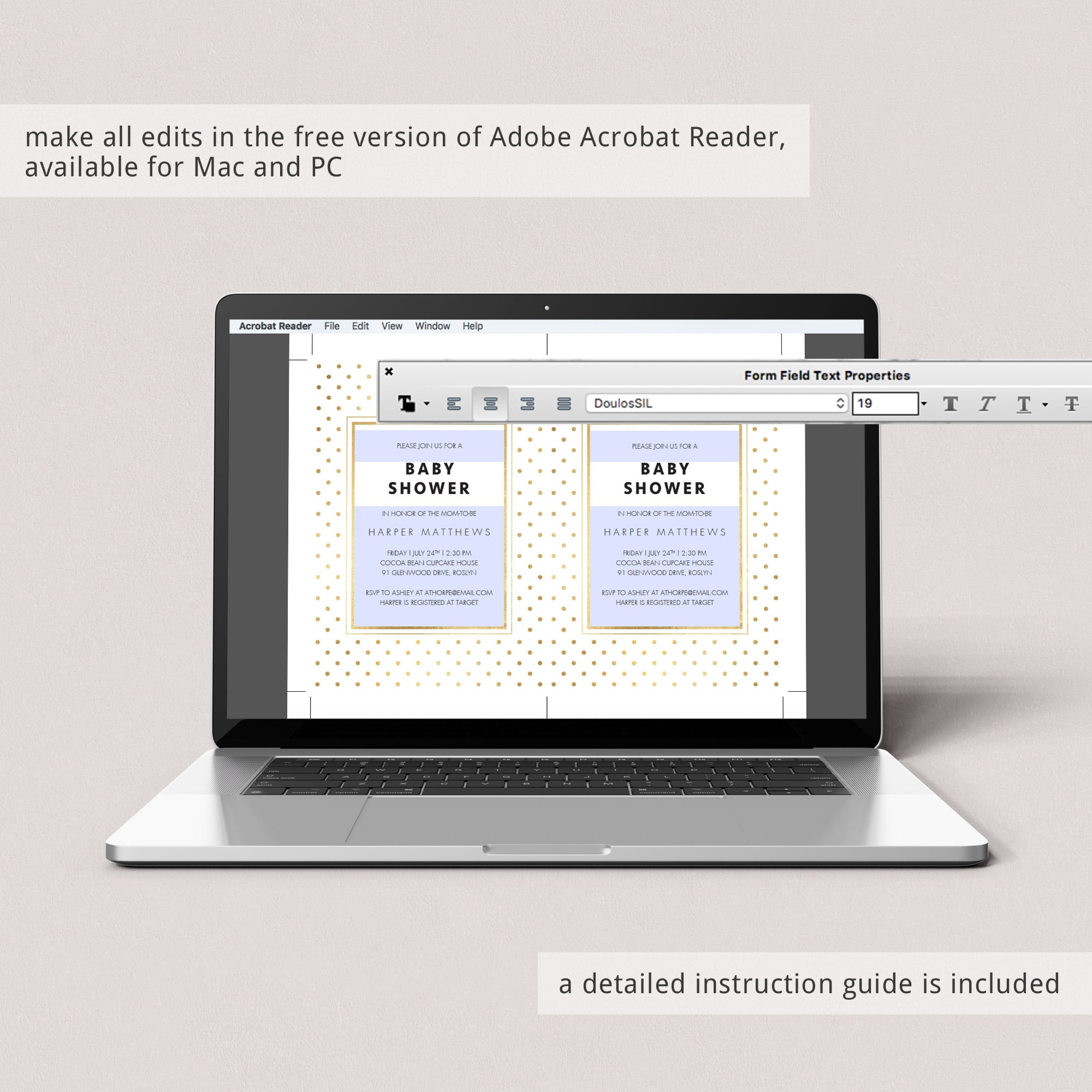 • 1 Editable PDF sized 5” x 7” to print or to use as evite