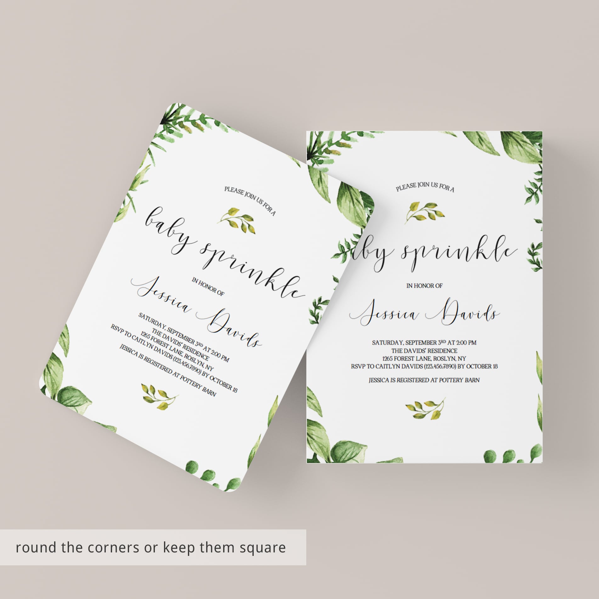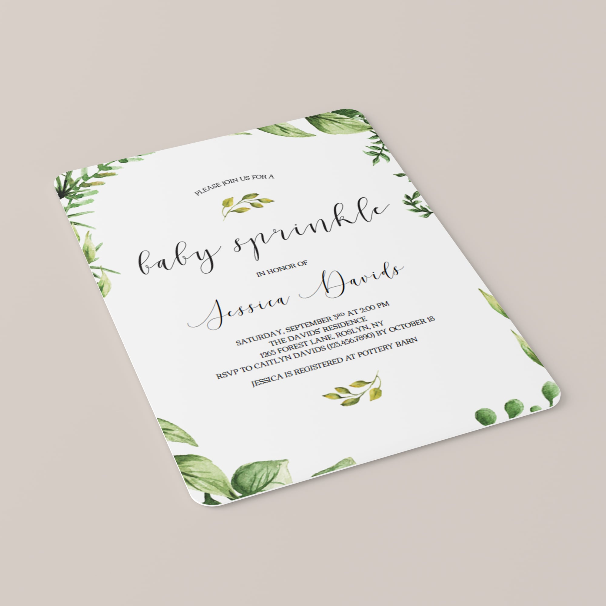 Guests will be delighted when they receive this unique gender neutral baby sprinkle invitation set with watercolor greenery. The elegant design is perfect for a garden baby sprinkle.