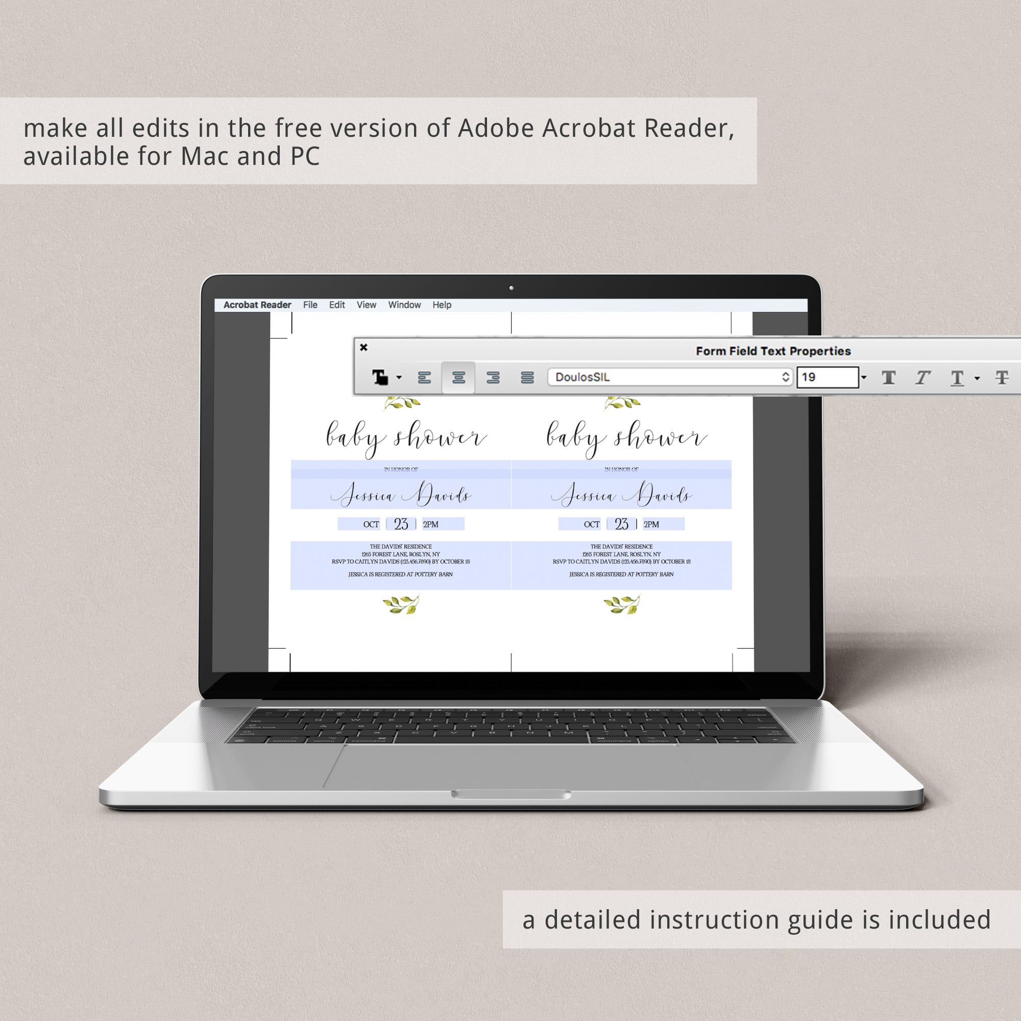 • 1 Editable PDF sized 5” x 7” to print or to use as evite