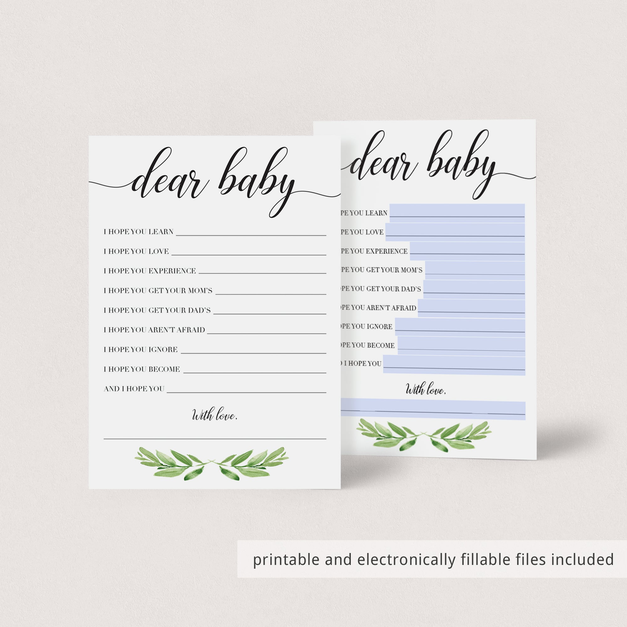 Create a meaningful keepsake for the new mom with this gender neutral baby shower wishes for baby card. Let every baby shower guest write down or fill in their wishes for the new baby and collect the cards for the lucky mom-to-be. Printable and electronically fillable files are included.