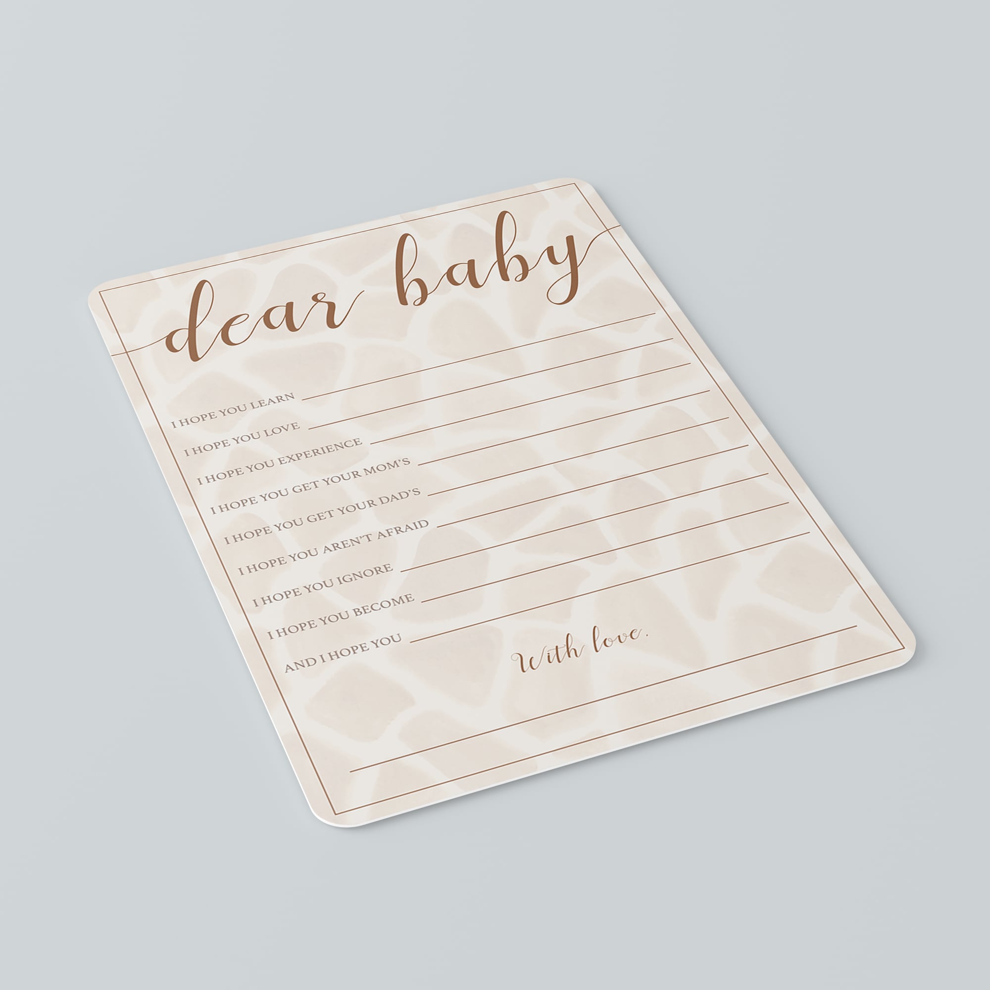 Create a beautiful keepsake for the new mom with these safari baby shower wishes for baby cards with giraffe pattern. The Dear Baby cards are perfect for a gender neutral baby shower.