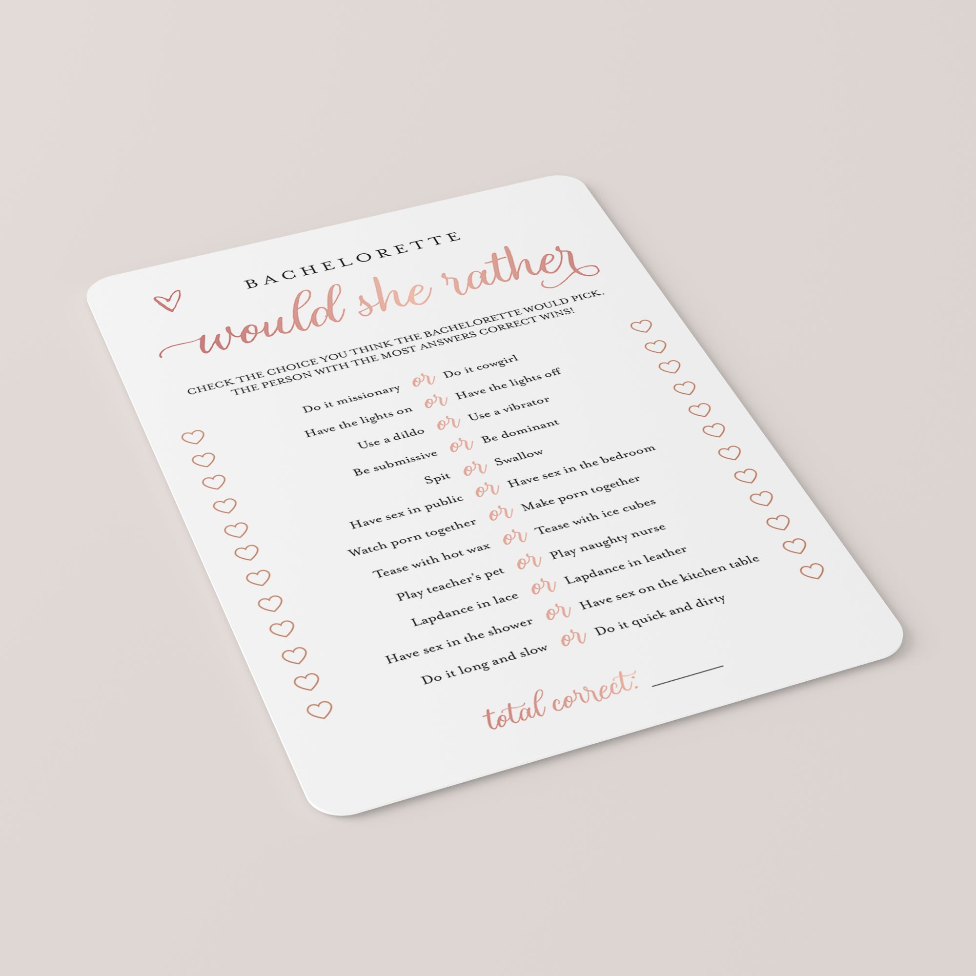 Kick off the fun at your bachelorette party with this simple, yet glamorous, rose gold bachelorette games bundle with 8 fun games. The rose gold games with elegant script are the perfect addition to your hens night or bachelorette party.