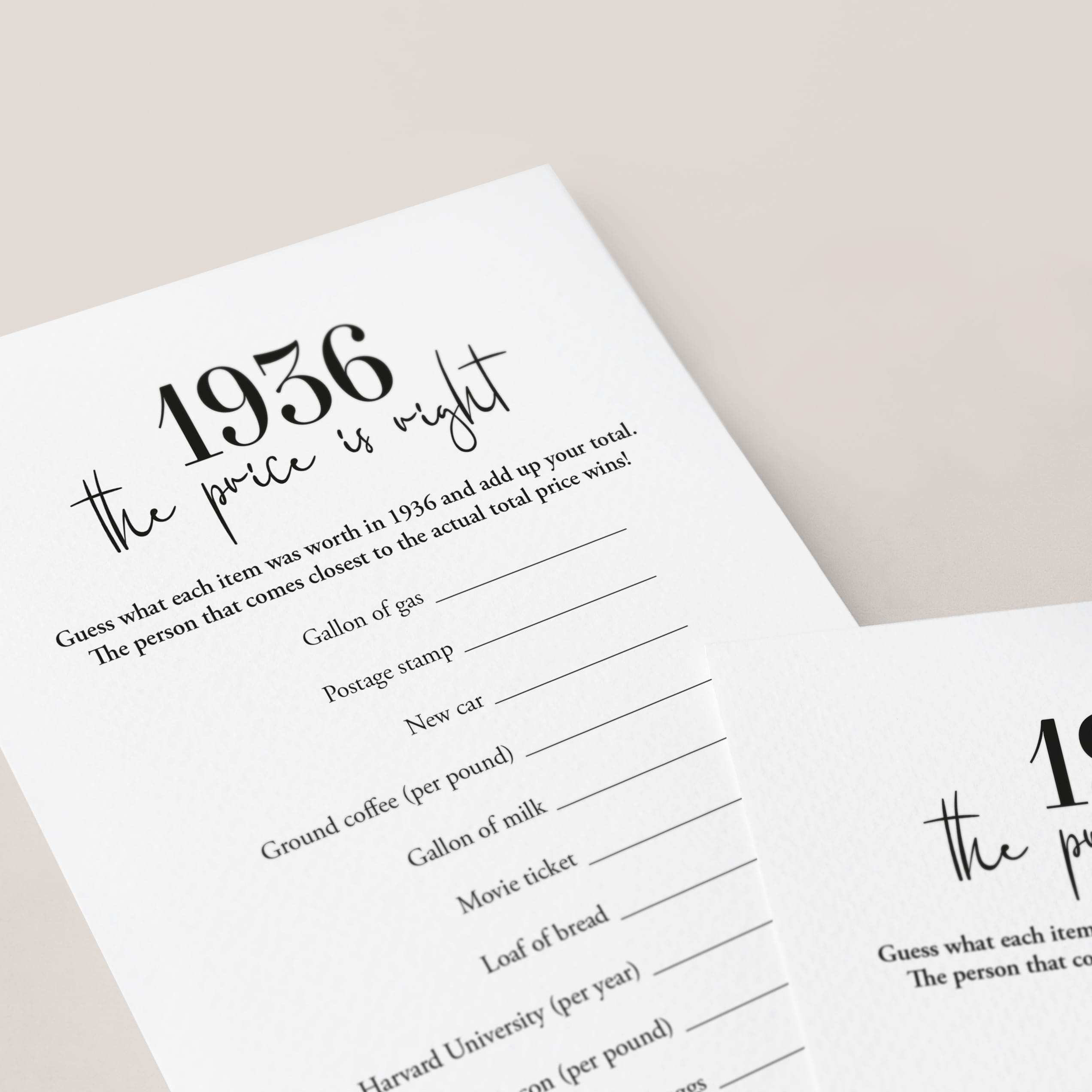 Step back in time with this fun 1936 The Price Is Right game. Whether you're celebrating a 90th birthday party or just want to take a trip down memory lane, our 1936 The Price Is Right game is the perfect icebreaker and conversation starter that will have your guests laughing, competing and reliving the past.