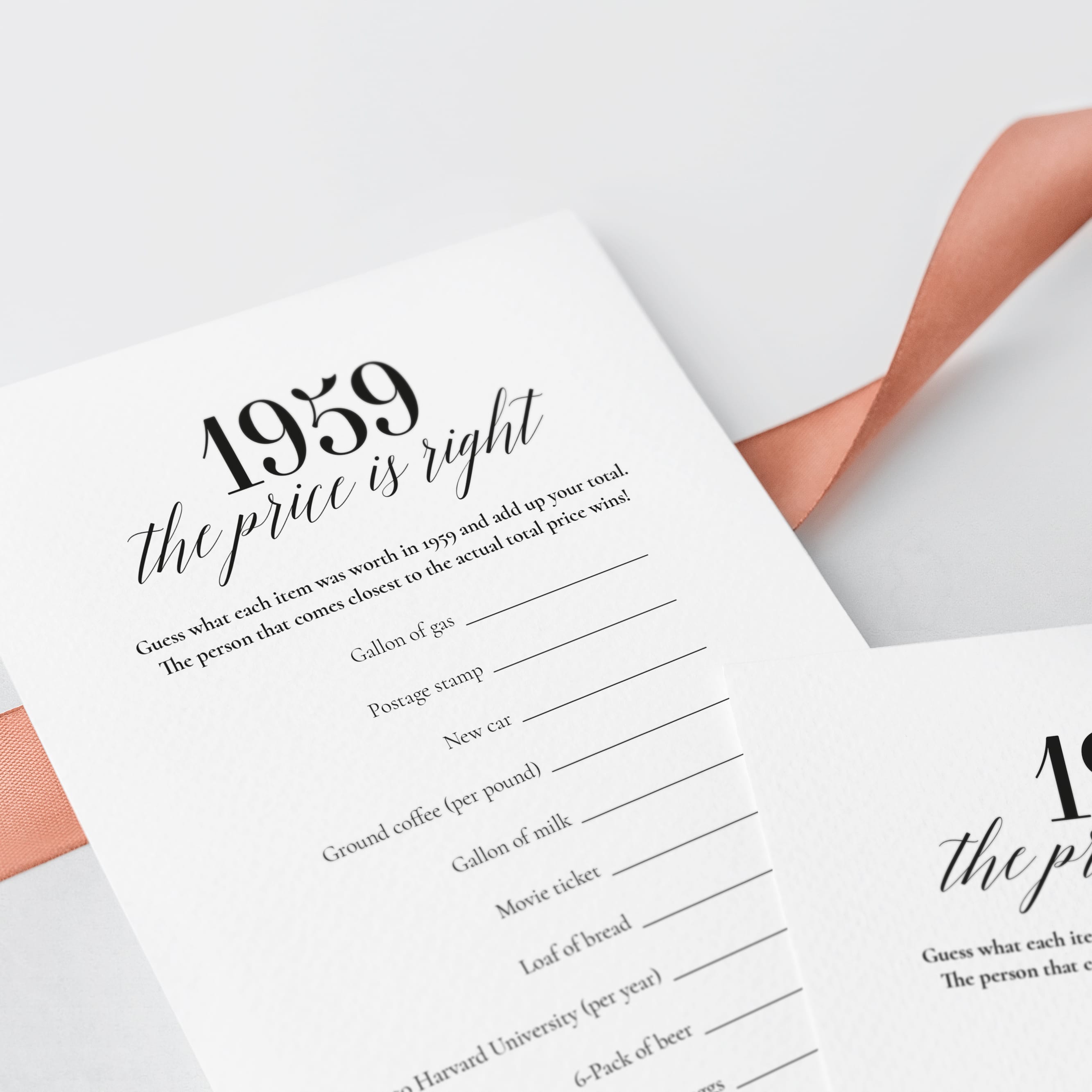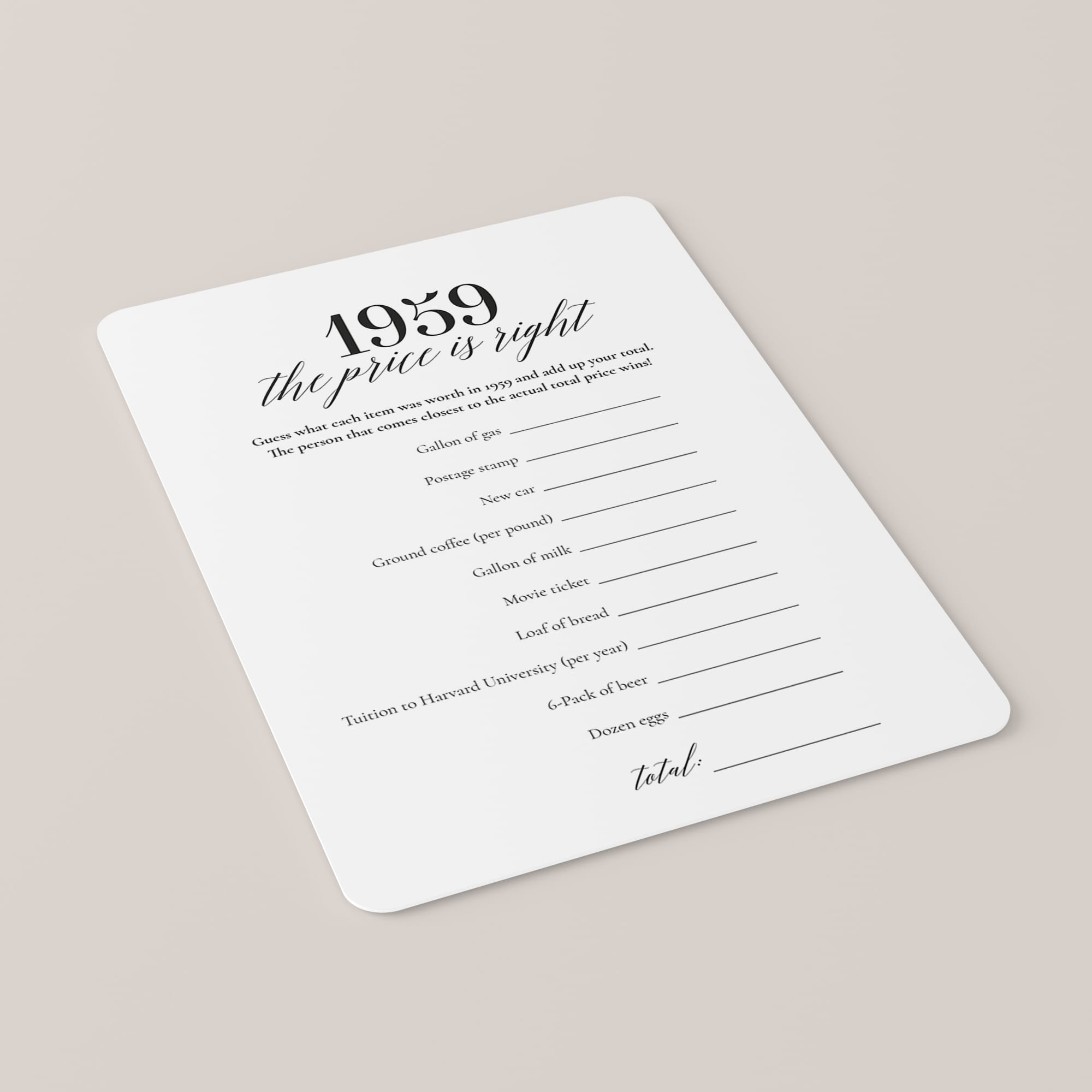 To determine the ultimate winner, simply add up everyone's guesses and see who comes closest to the actual total of these 1959 prices. It's a game of memory and estimation that will have your guests engaged and reminiscing about the good ol' days.