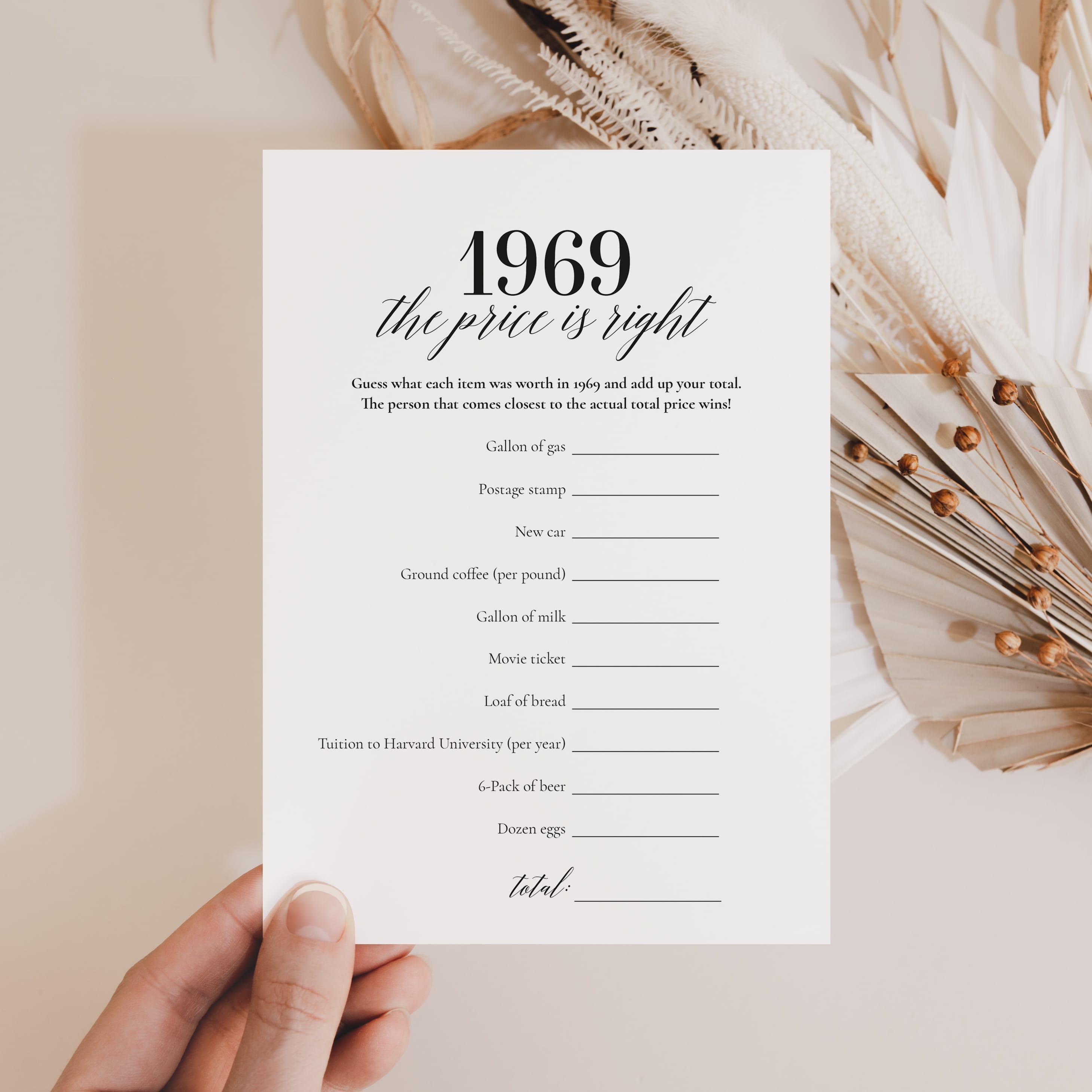 To determine the ultimate winner, simply add up everyone's guesses and see who comes closest to the actual total of these 1969 prices. It's a game of memory and estimation that will have your guests engaged and reminiscing about the good ol' days.