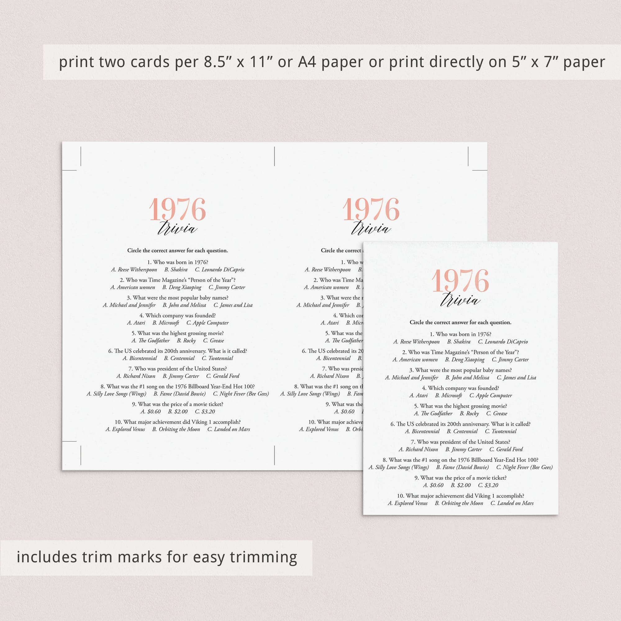 This 1976 trivia is a digital download. After purchase you will receive a download link immediately on screen. Also within minutes of your order and payment, an e-mail will be sent to you with a link for your download.