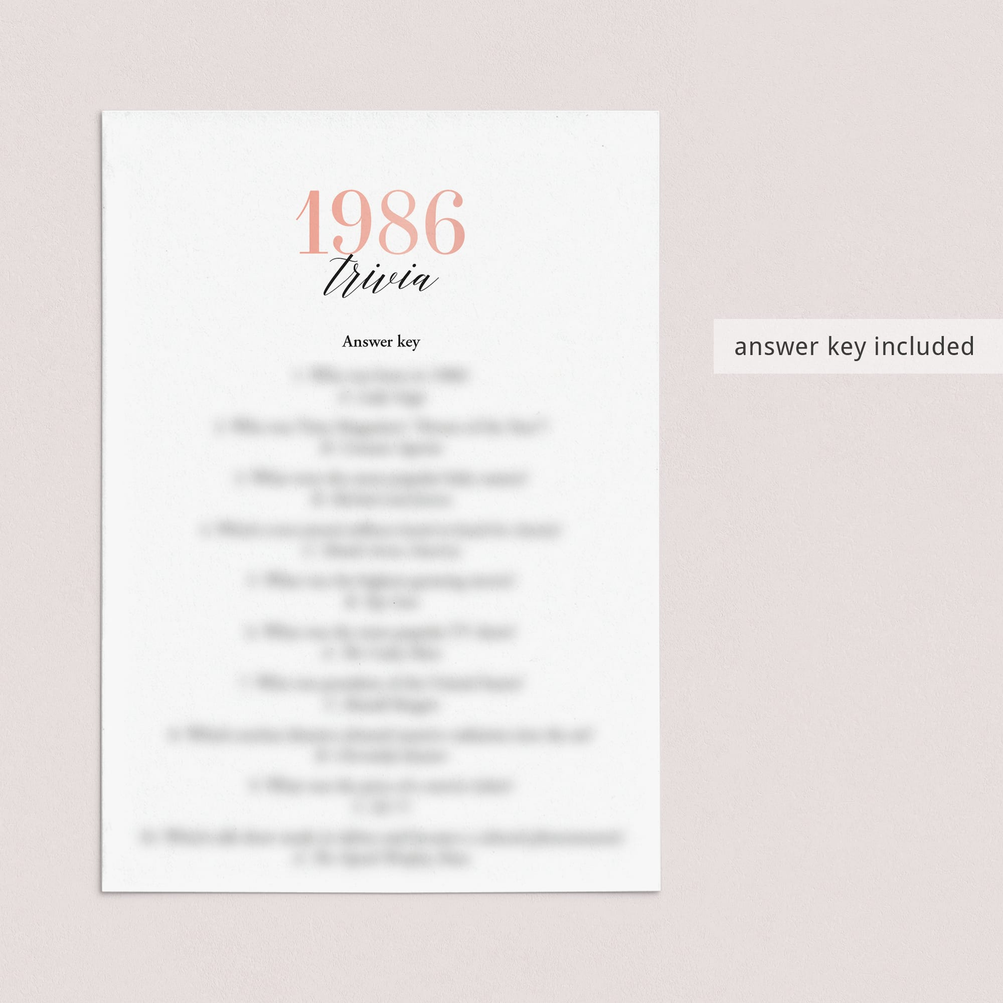 Just in case you are having trouble figuring out the answers, an answer key with the 1986 trivia answers is included.