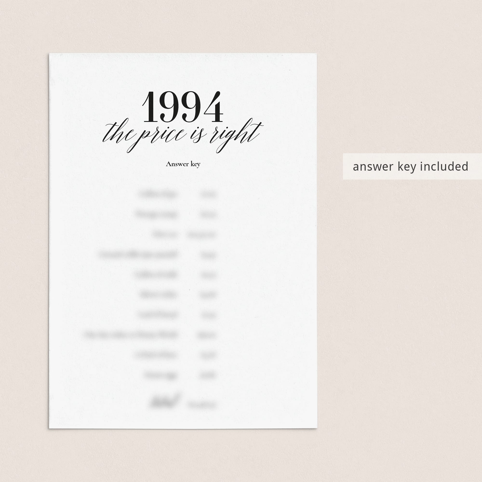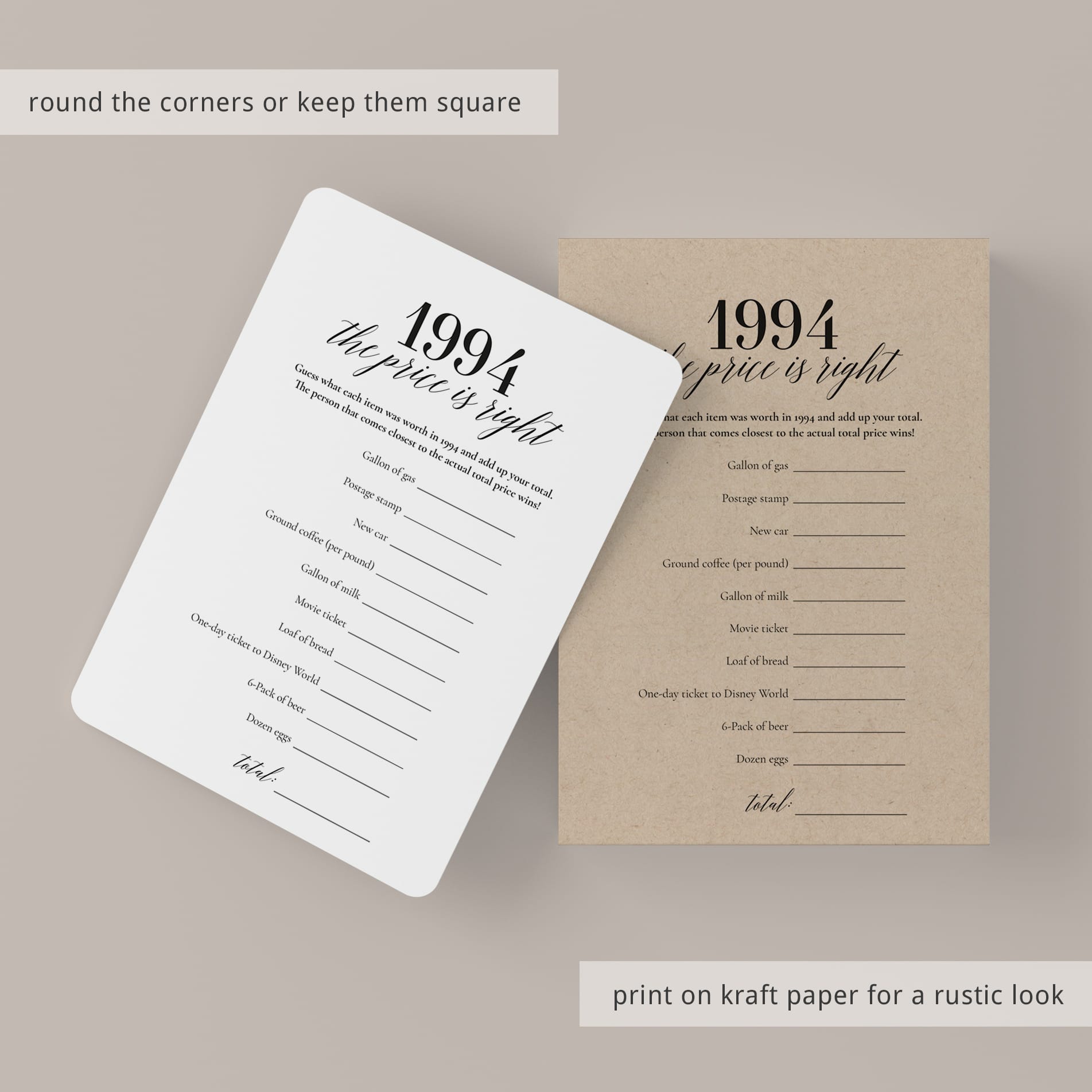 To determine the ultimate winner, simply add up everyone's guesses and see who comes closest to the actual total of these 1994 prices. It's a game of memory and estimation that will have your guests engaged and reminiscing about the good ol' days.