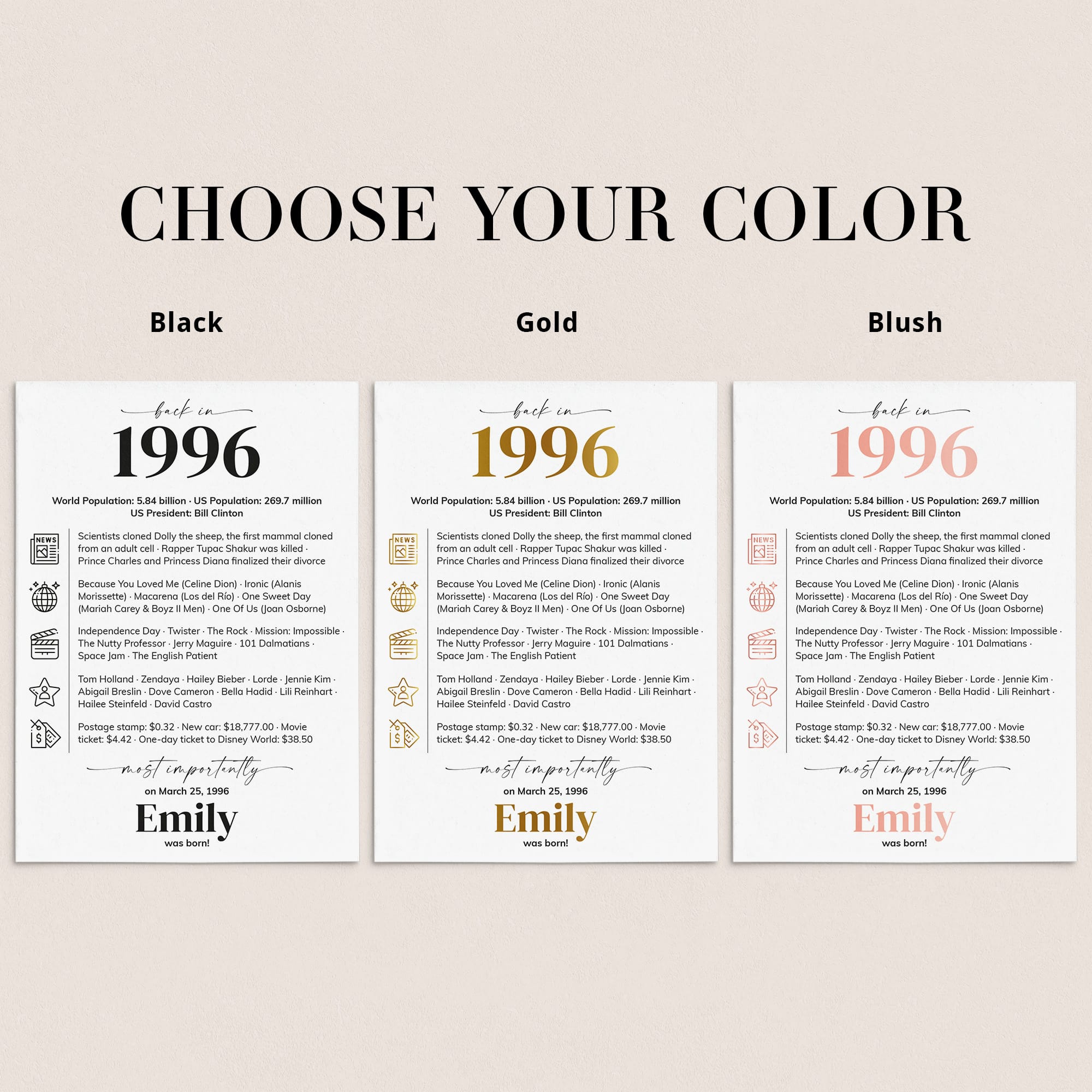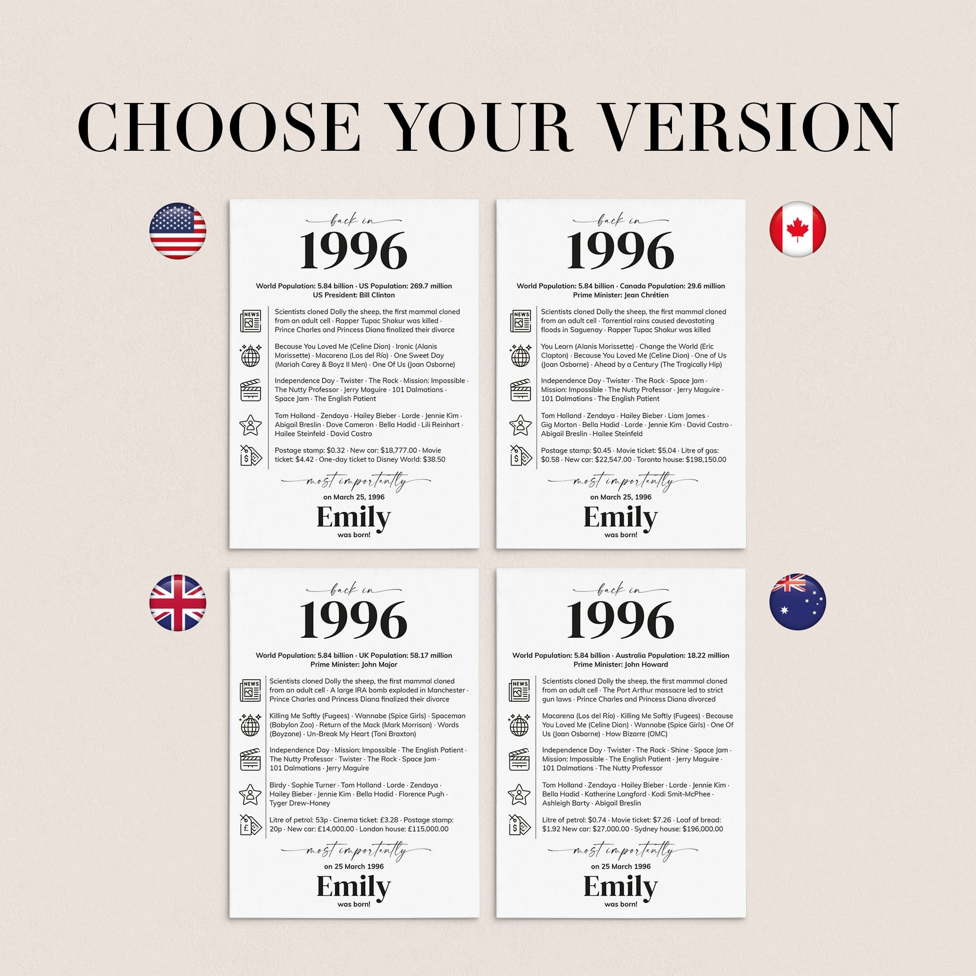 30th Birthday Table Decor Custom Back in 1996 Facts Printable by LittleSizzle