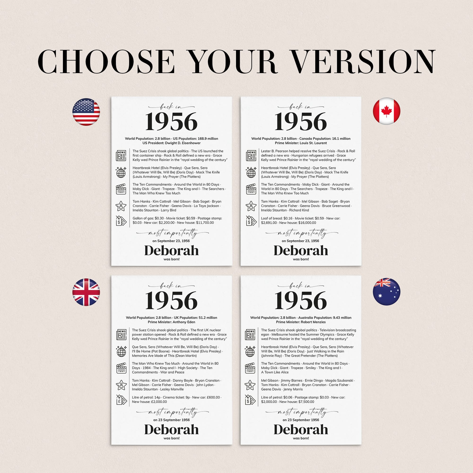 • A fun conversation starter, featuring key highlights and trivia from 1956.