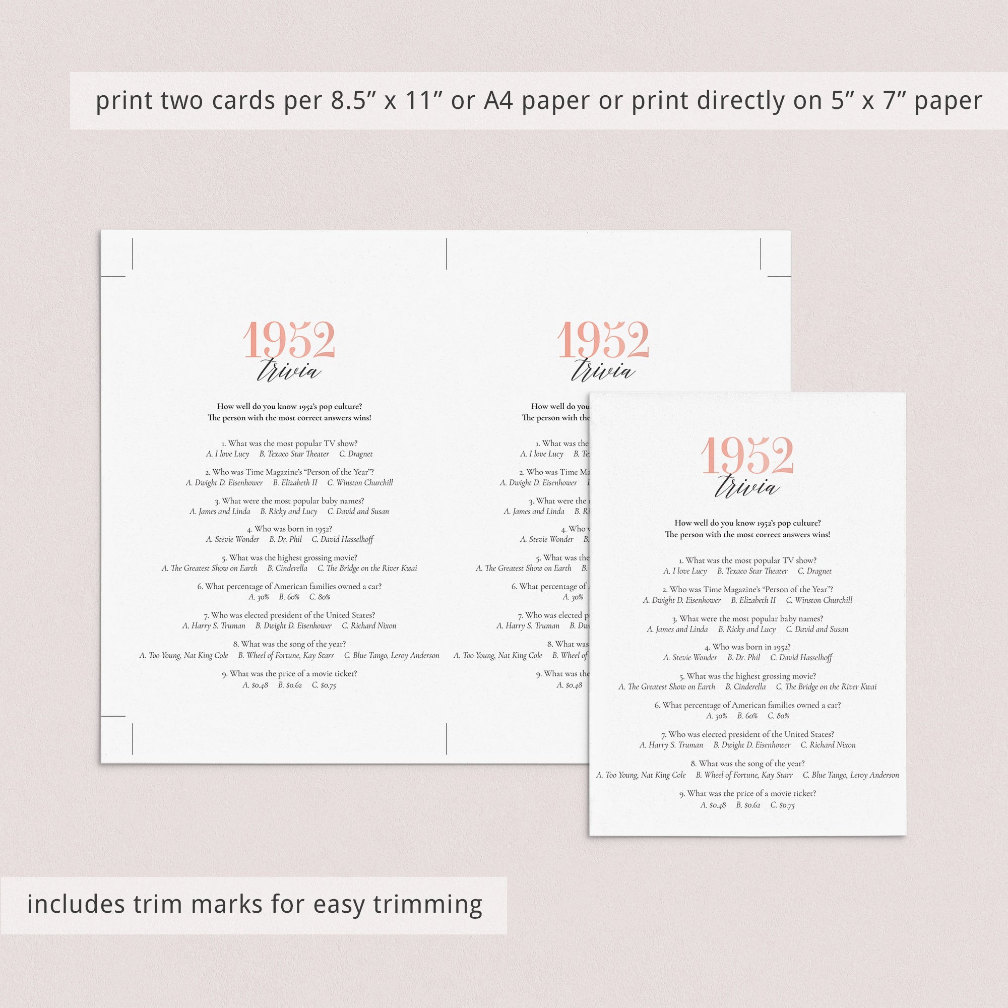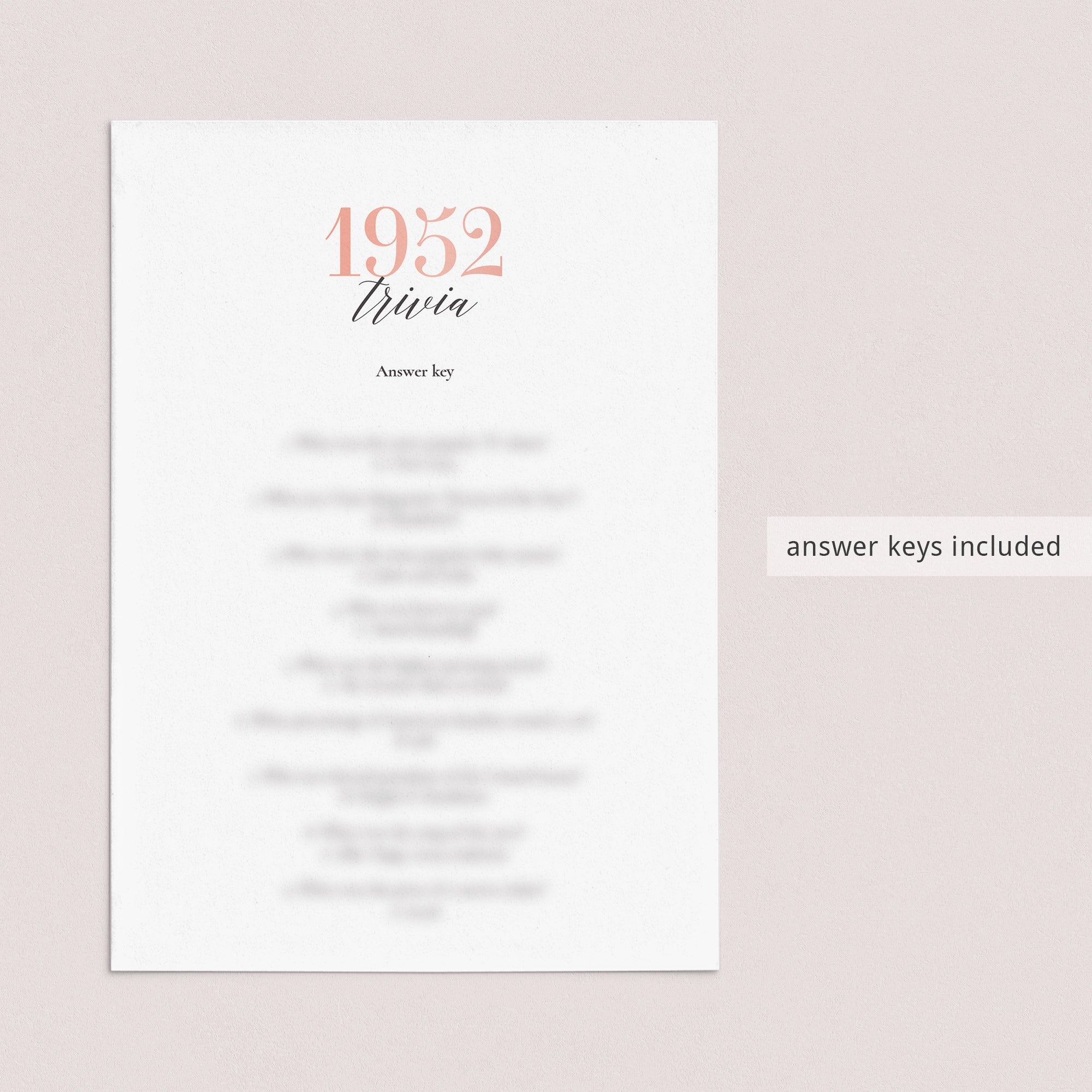 • 1952 Trivia (answer key included)