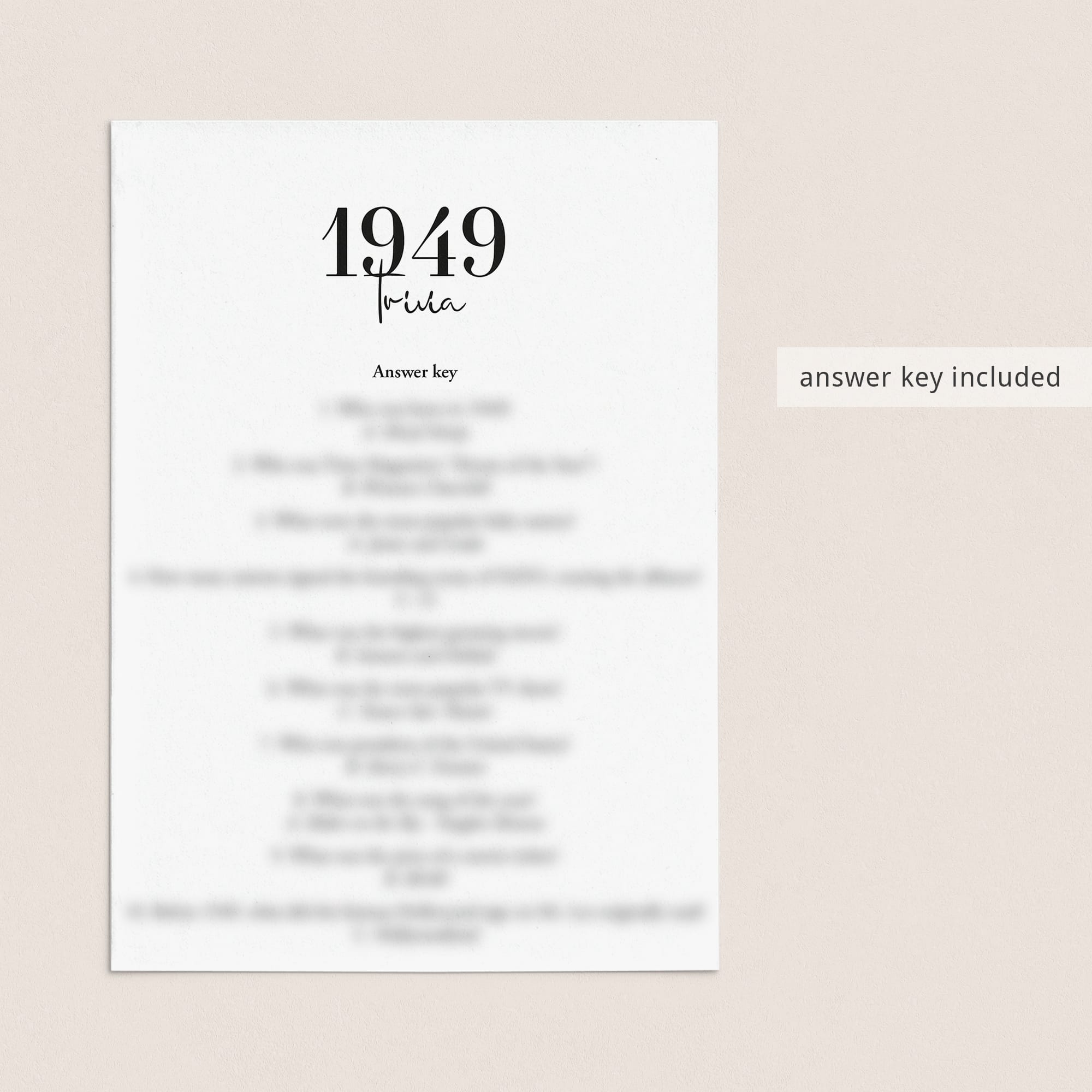 • 1949 Trivia (answer key included)