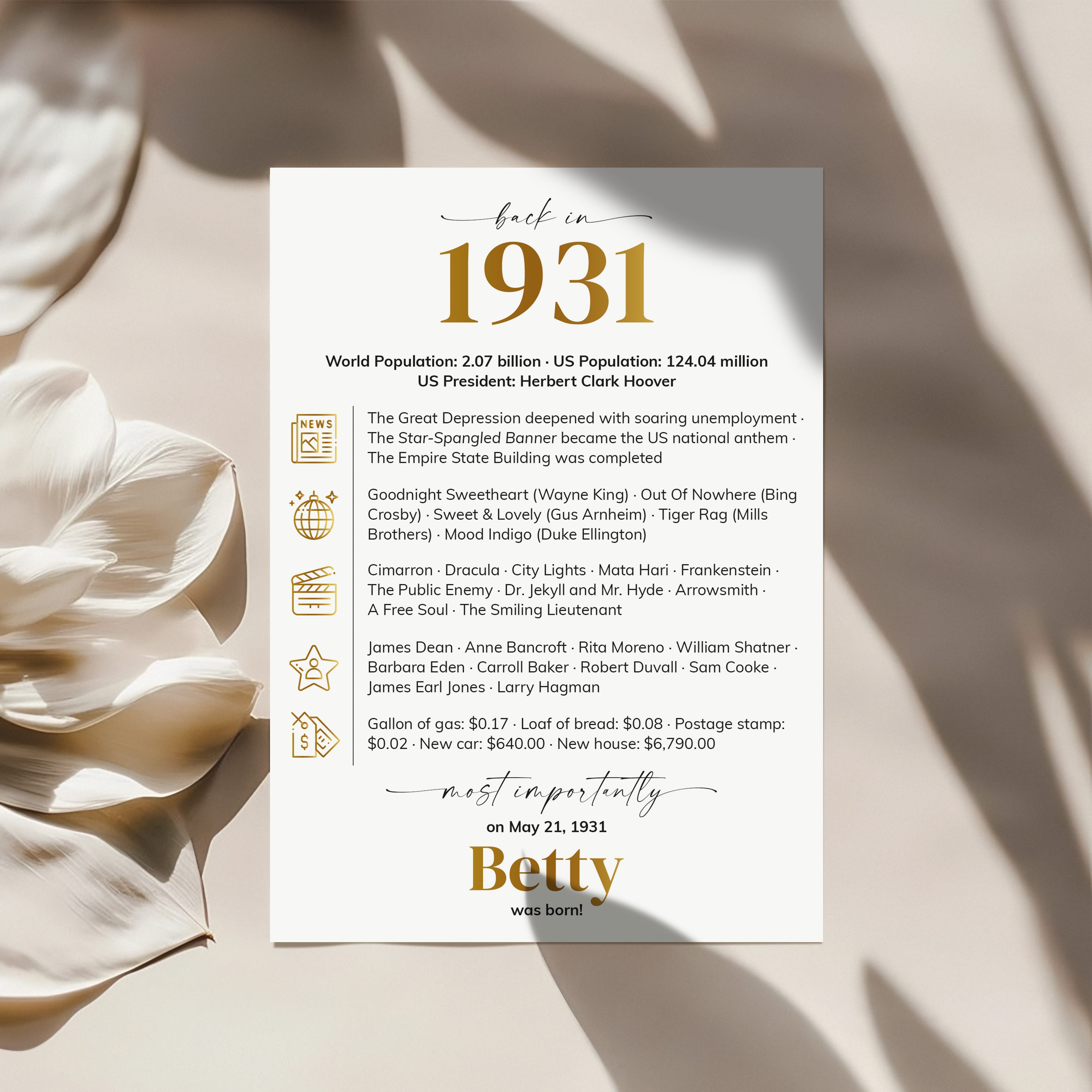 • A fun conversation starter, featuring key highlights and trivia from 1931.
