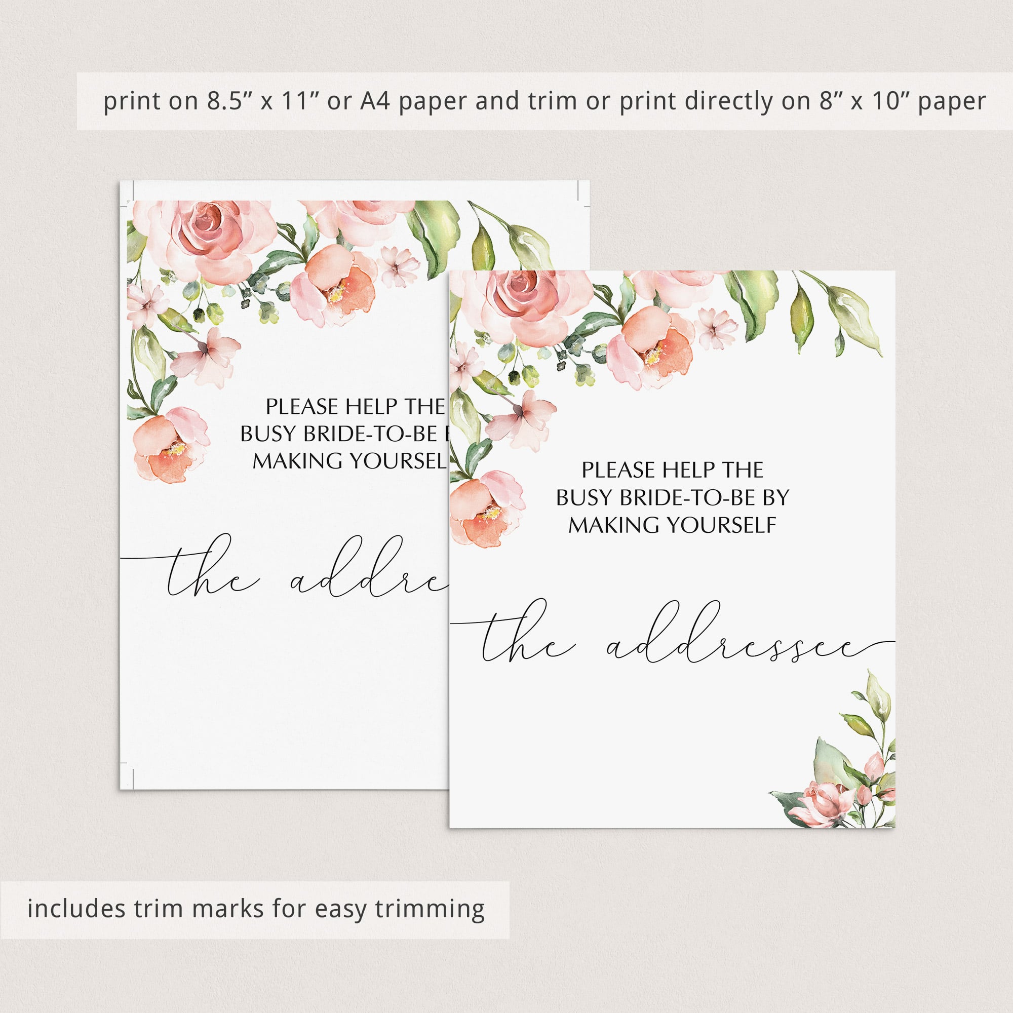 Make life easier for the bride-to-be by setting up an Address An Envelope Station. Use this gorgeous addressee card sign with blush flowers to show your guests where they can fill out their address on an envelope.