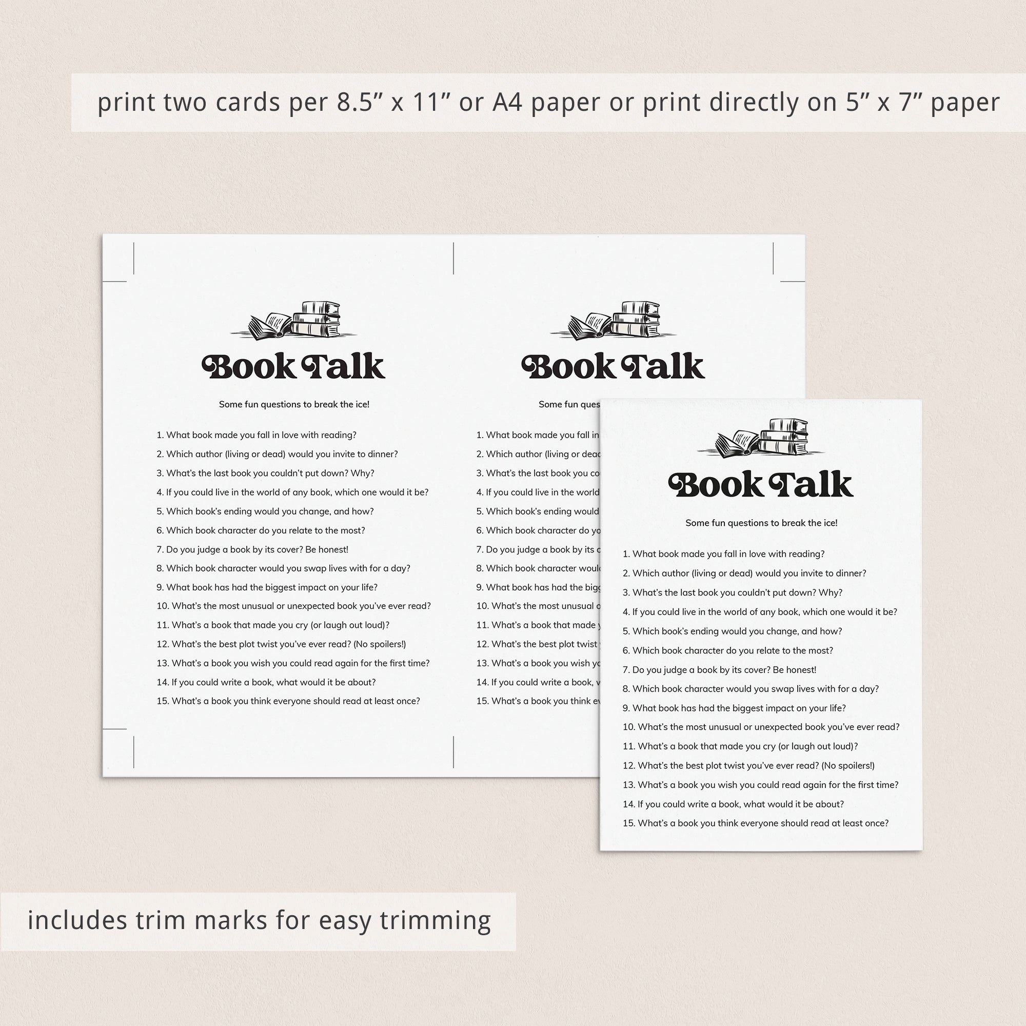 Simply print, cut, and hand out the cards to your guests. They’re a wonderful way to get to know fellow readers, share book recommendations, and create memorable conversations.