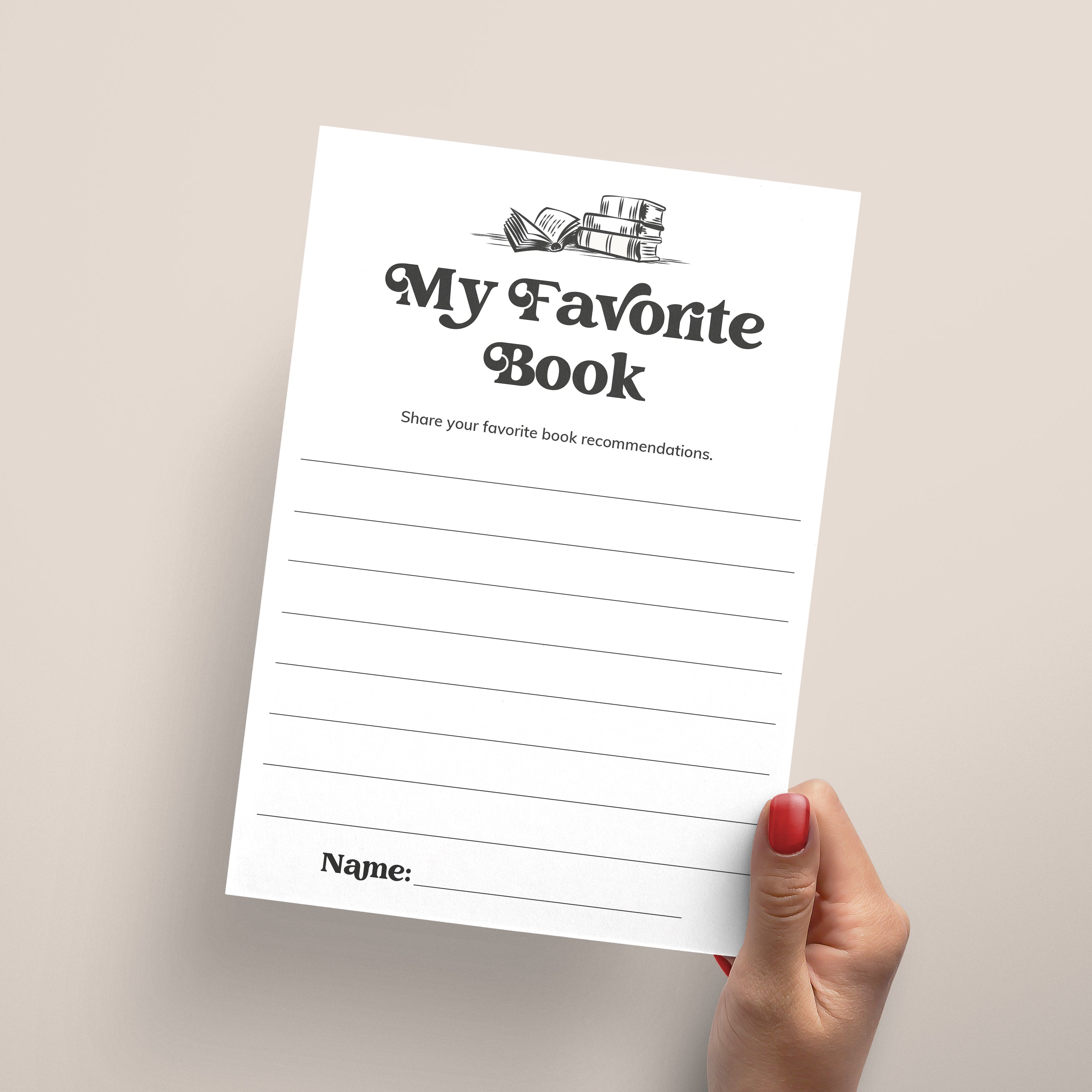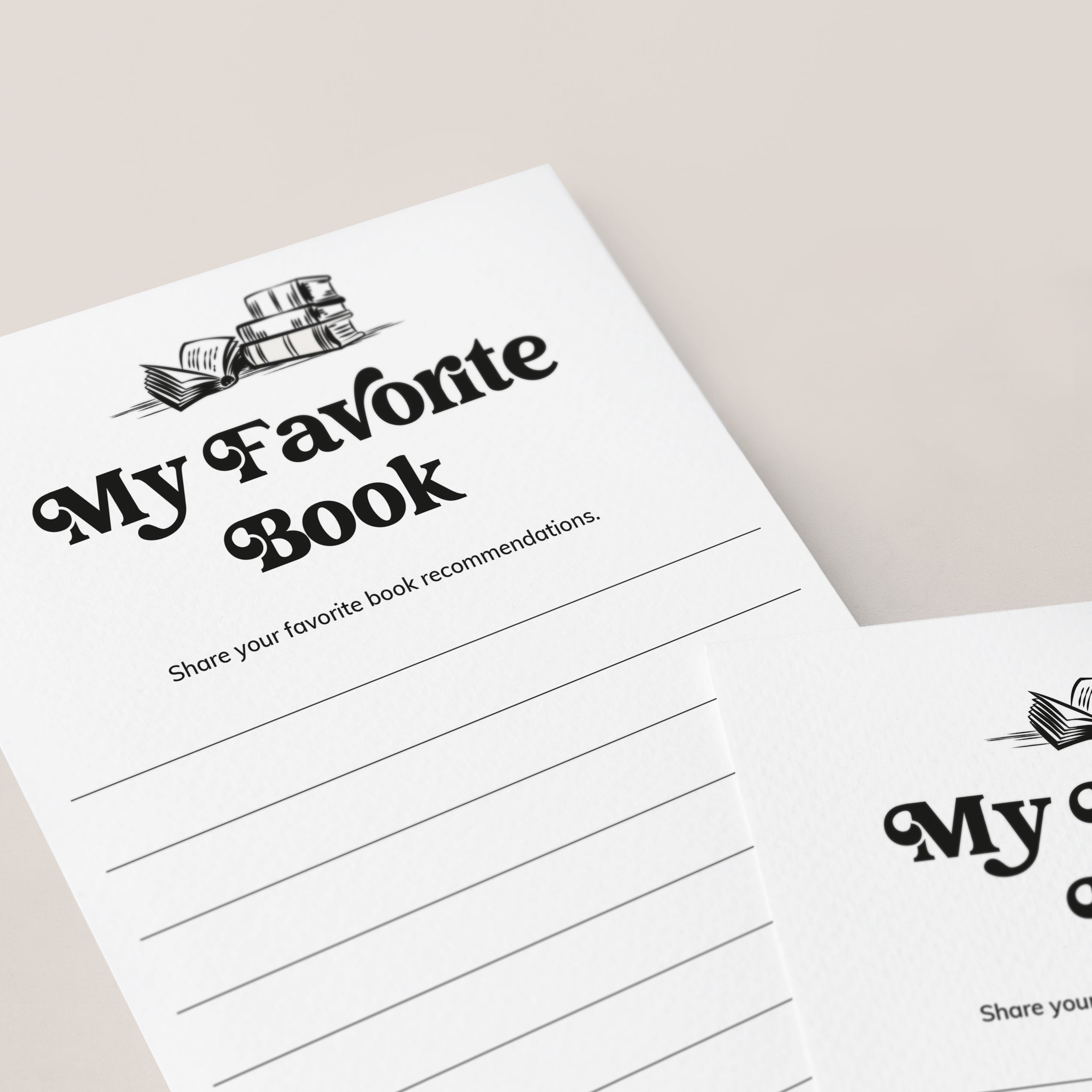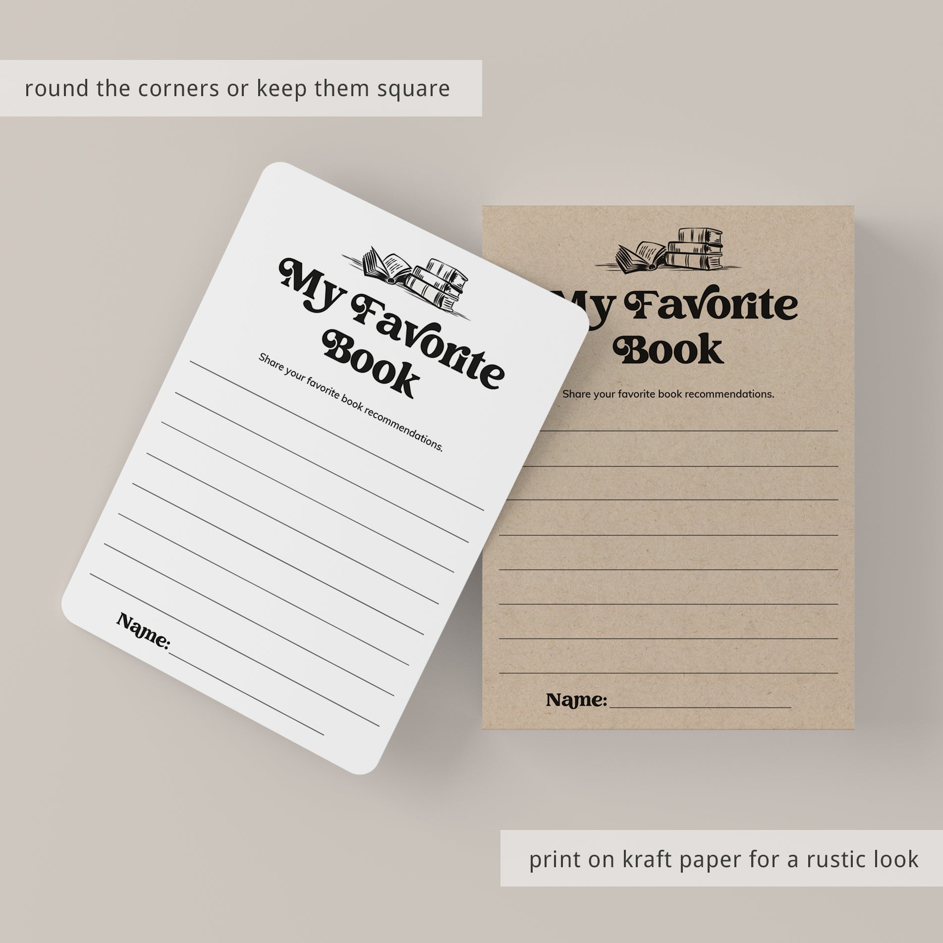 Share your favorite reads and discover new books with this printable My Favorite Book Card for your Book Club or Reading Group! Perfect for a Book Club meeting, Book Club Party, or casual Bookclub gathering, these cards let each guest write down their top book recommendations.
