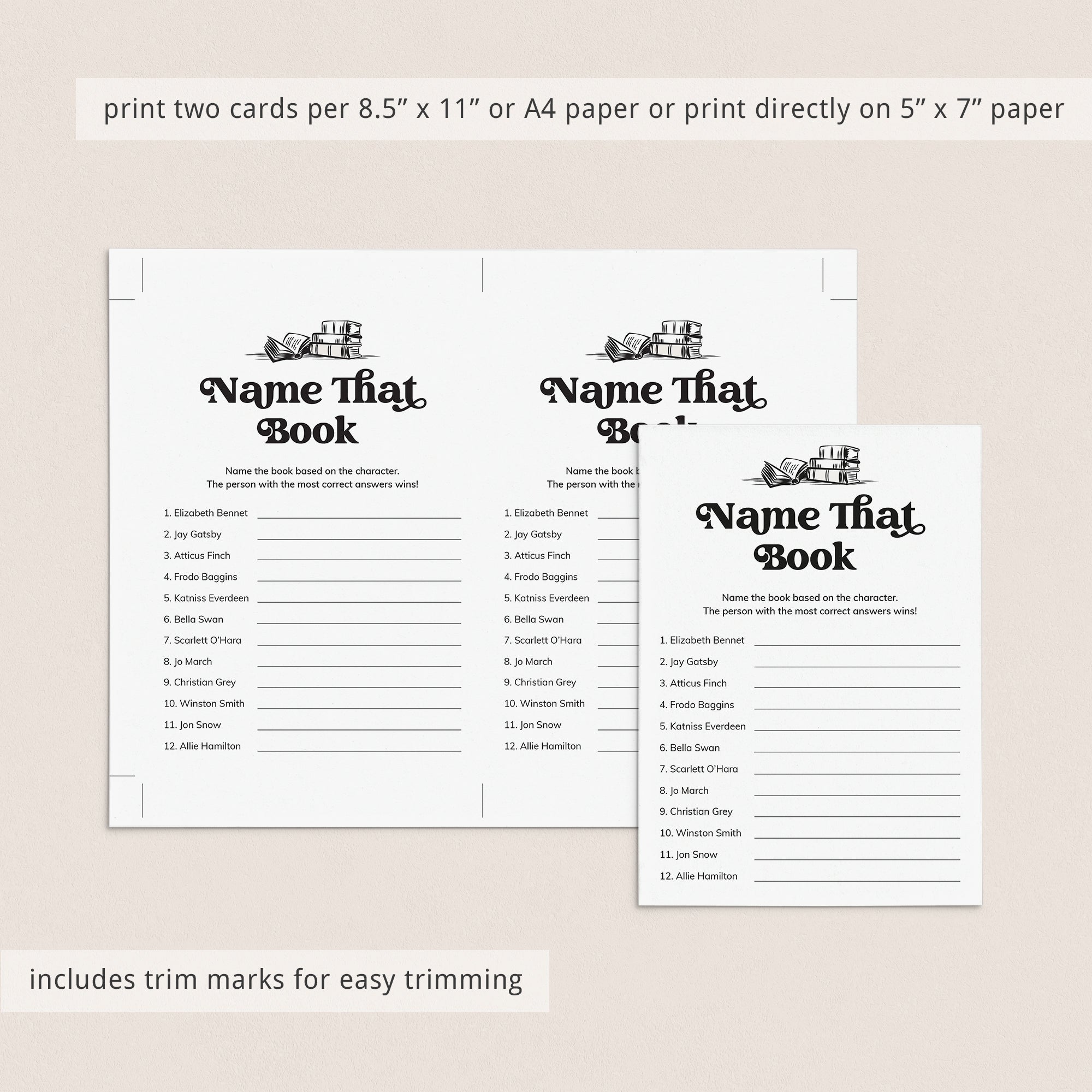 It’s simple to play: each guest writes down the title of the book for every character on the list. The player with the most correct answers wins!