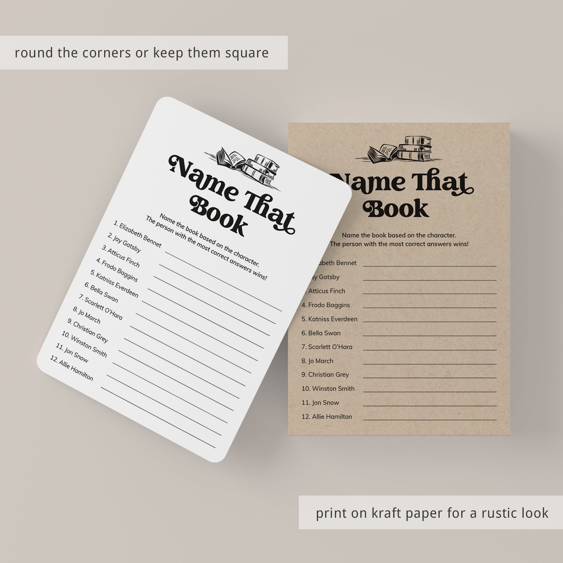 Think you know your book characters? Put your literary knowledge to the test with this fun Name That Book game! Perfect for a Book Club meeting or Reading Group Party, this game challenges players to match 12 famous characters, like Jay Gatsby and Jo March, to the books they came from.