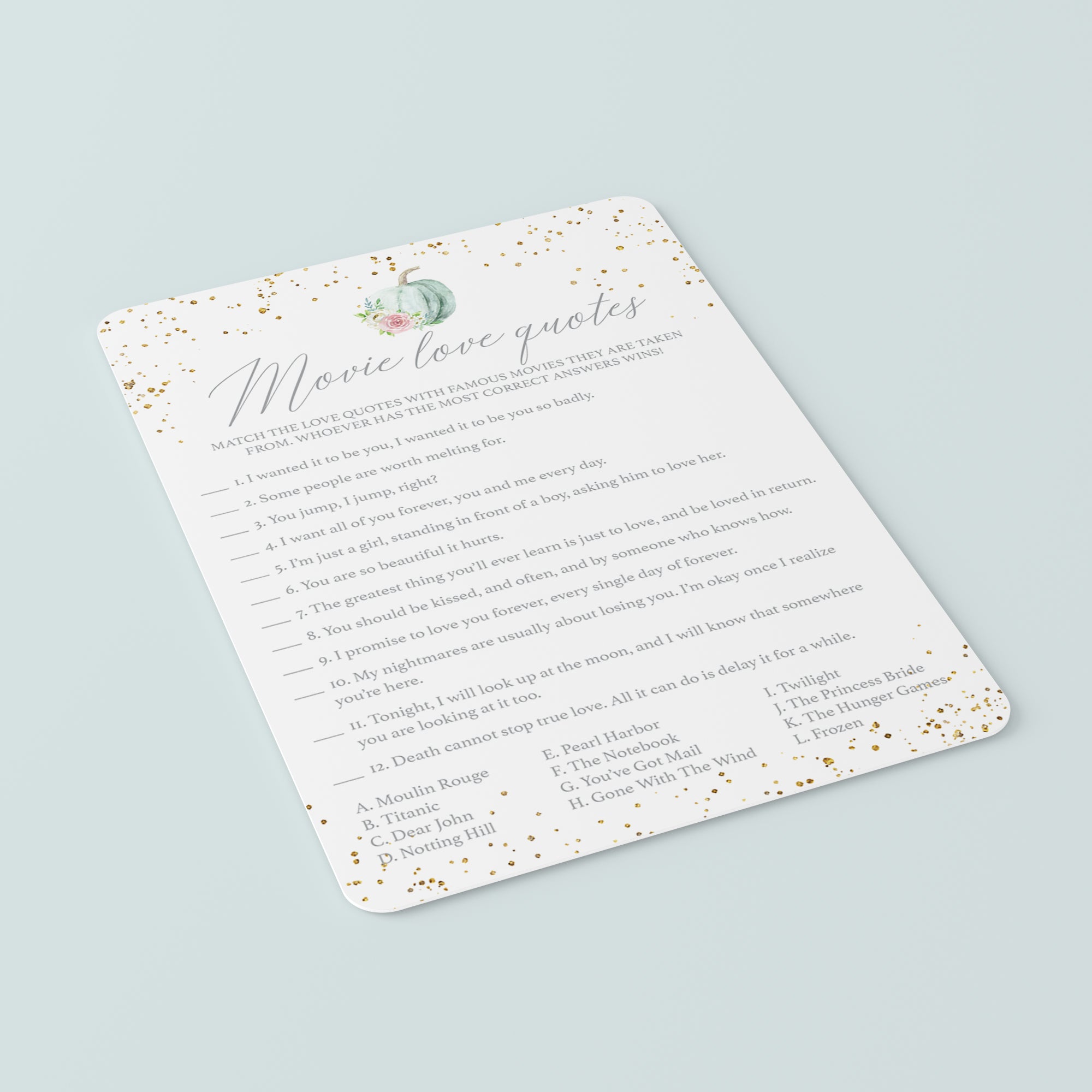 You think you know your romantic movies? This autumn bridal shower Romantic Movie Trivia will put you to the test. It's the perfect game for romantic movie fans and will sure get the girls at your bridal party interacting, laughing and enjoying the thrill of competition.